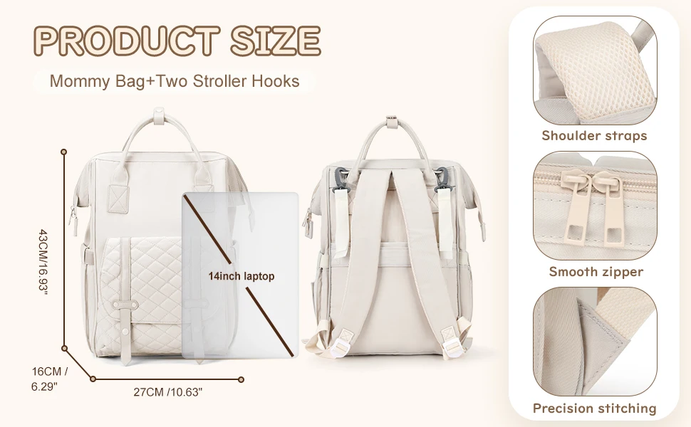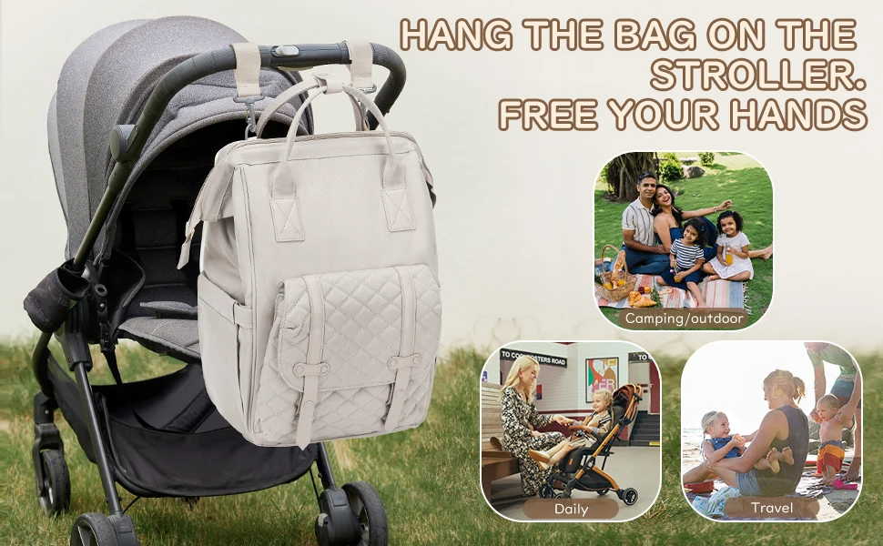 Comodo e premuroso: gli spallacci imbottiti, la maniglia superiore facile da afferrare e le comode clip per passeggino ti consentono di utilizzare questa borsa per pannolini come zaino essenziale da viaggio, una borsa o attaccarla al tuo passeggino.