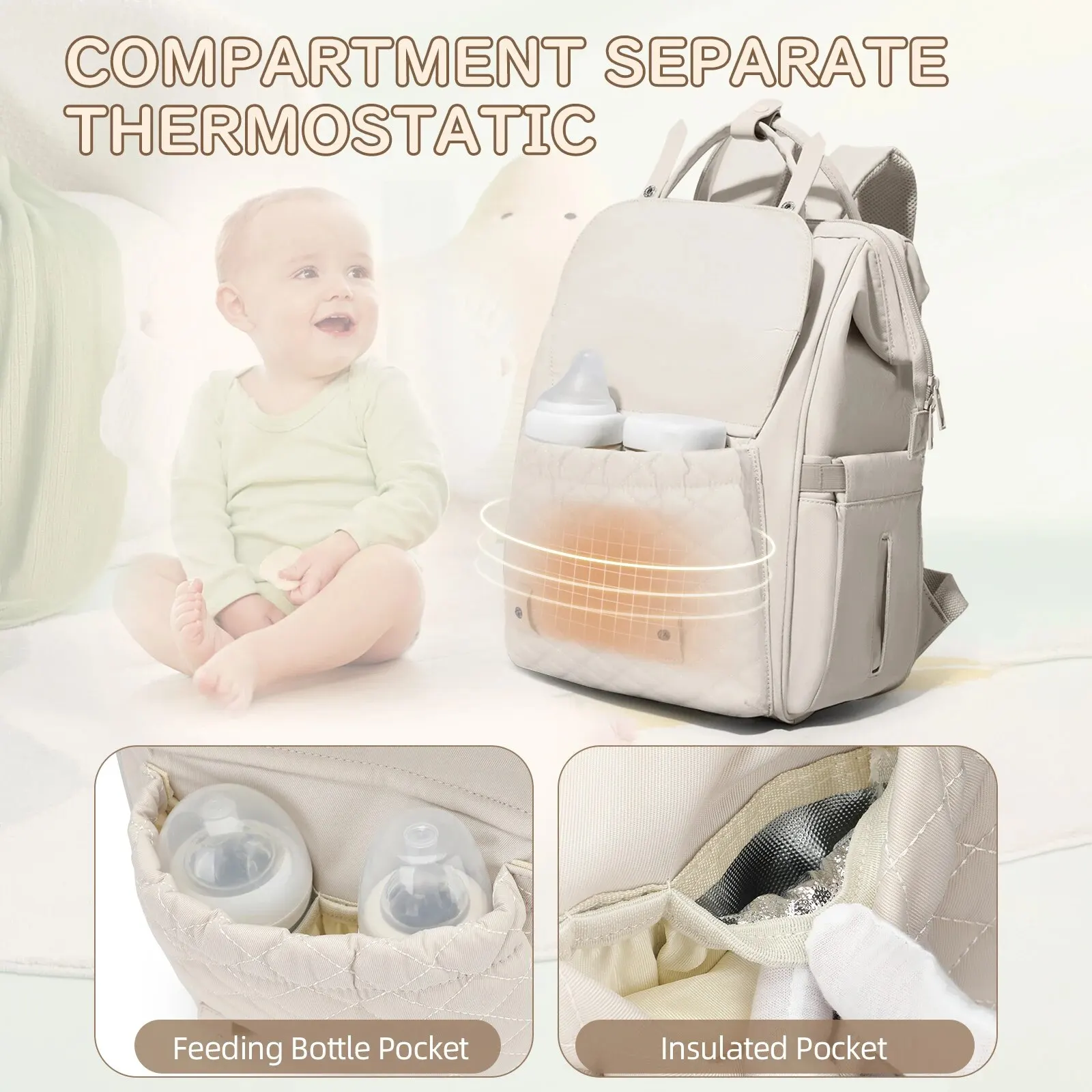 Tonnellate di stoccaggio-la borsa per pannolini per bambini ha tonnellate di spazi per contenere Baby Stuff! La borsa per bambini include 1 scomparti principali, 2 tasche isolate (adatte a tutte le principali bottiglie per neonati). Tasche multiple con cerniere easy-glide rende questo zaino fasciatoio facilmente accessibile con una sola mano.