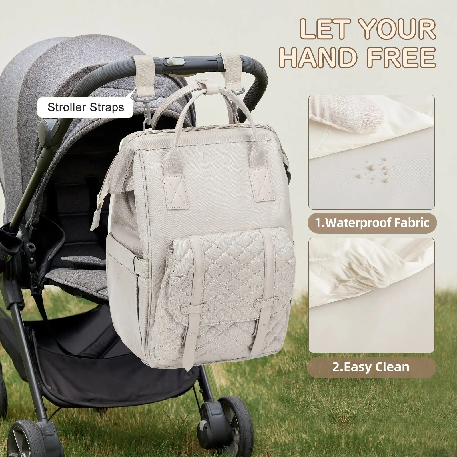 Comodo e premuroso: gli spallacci imbottiti, la maniglia superiore facile da afferrare e le comode clip per passeggino ti consentono di utilizzare questa borsa per pannolini come zaino essenziale da viaggio, una borsa o attaccarla al tuo passeggino.