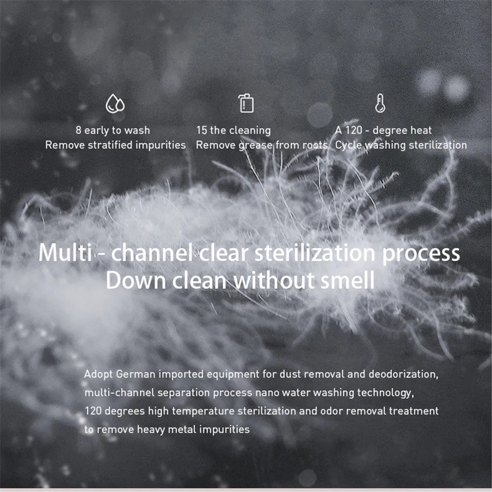 Imbottitura per piumino premium: 100 % Gosse Down Filling produce il nostro inserto per piumino morbido, leggero ma caldo, buono per tutte le stagioni.
