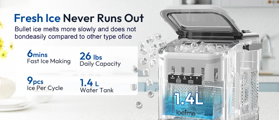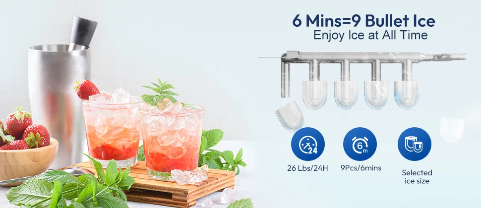 Tempo di ghiaccio: 6-13 minuti/9 pezzi (6-8 minuti possono essere raggiunto dopo una ora di produzione di ghiaccio)