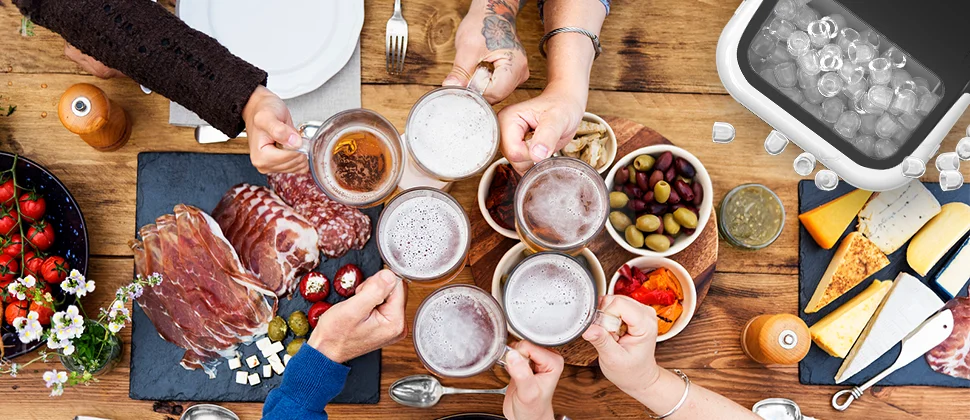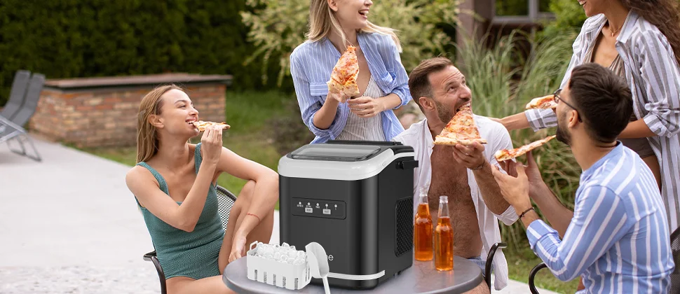 –Sistema di adattamento a doppia capacità: 1.Il serbatoio dell’acqua da 4 litri è dotato di secchiello per il ghiaccio staccabile (capacità 70-110 ghiaccio), supporta la personalizzazione del cubo di ghiaccio di doppio formato S/L (S: 20×25 mm, L: 25×30 mm), e è adatto per vari scenari necessari come bevande e barcisti.