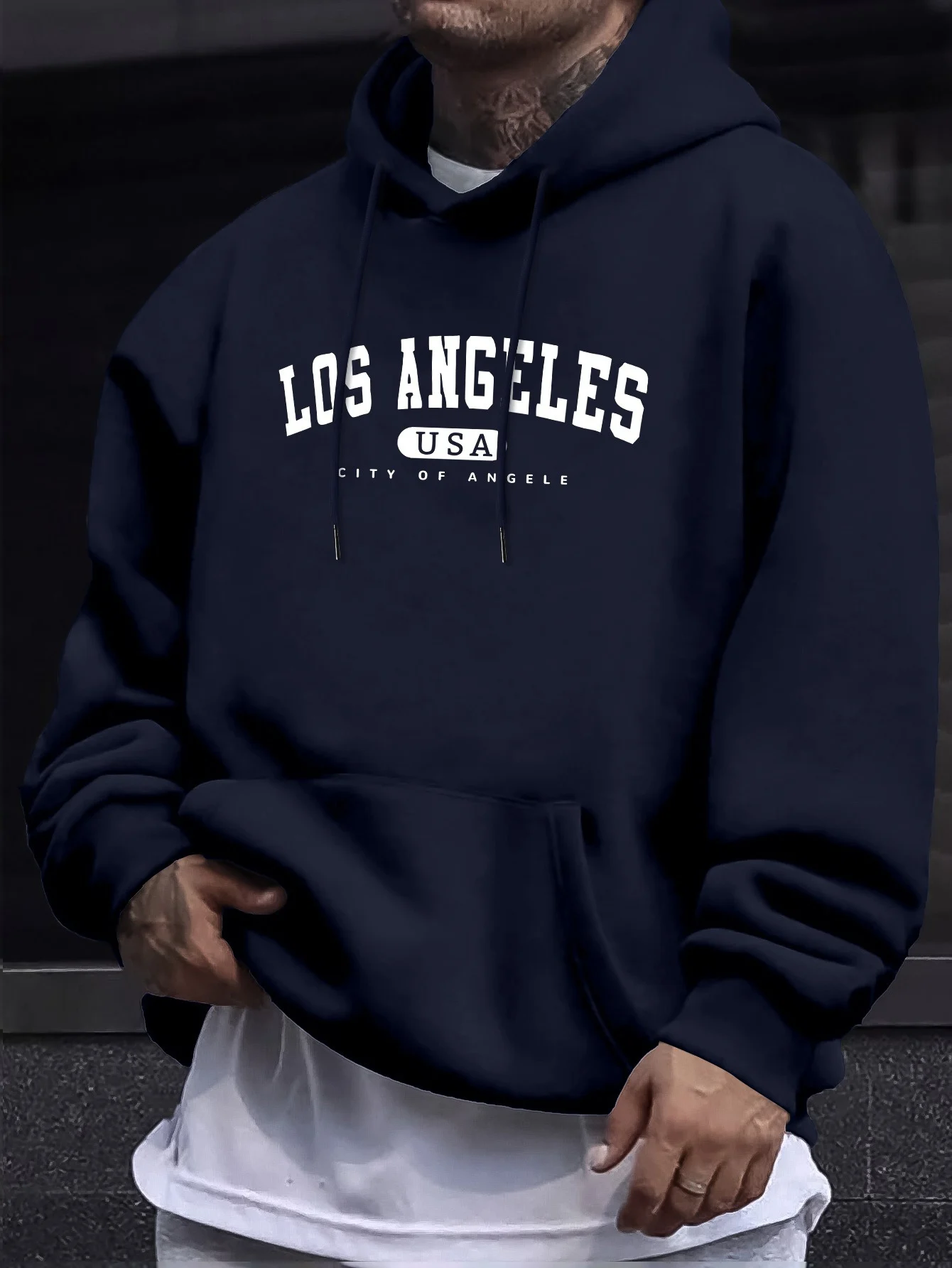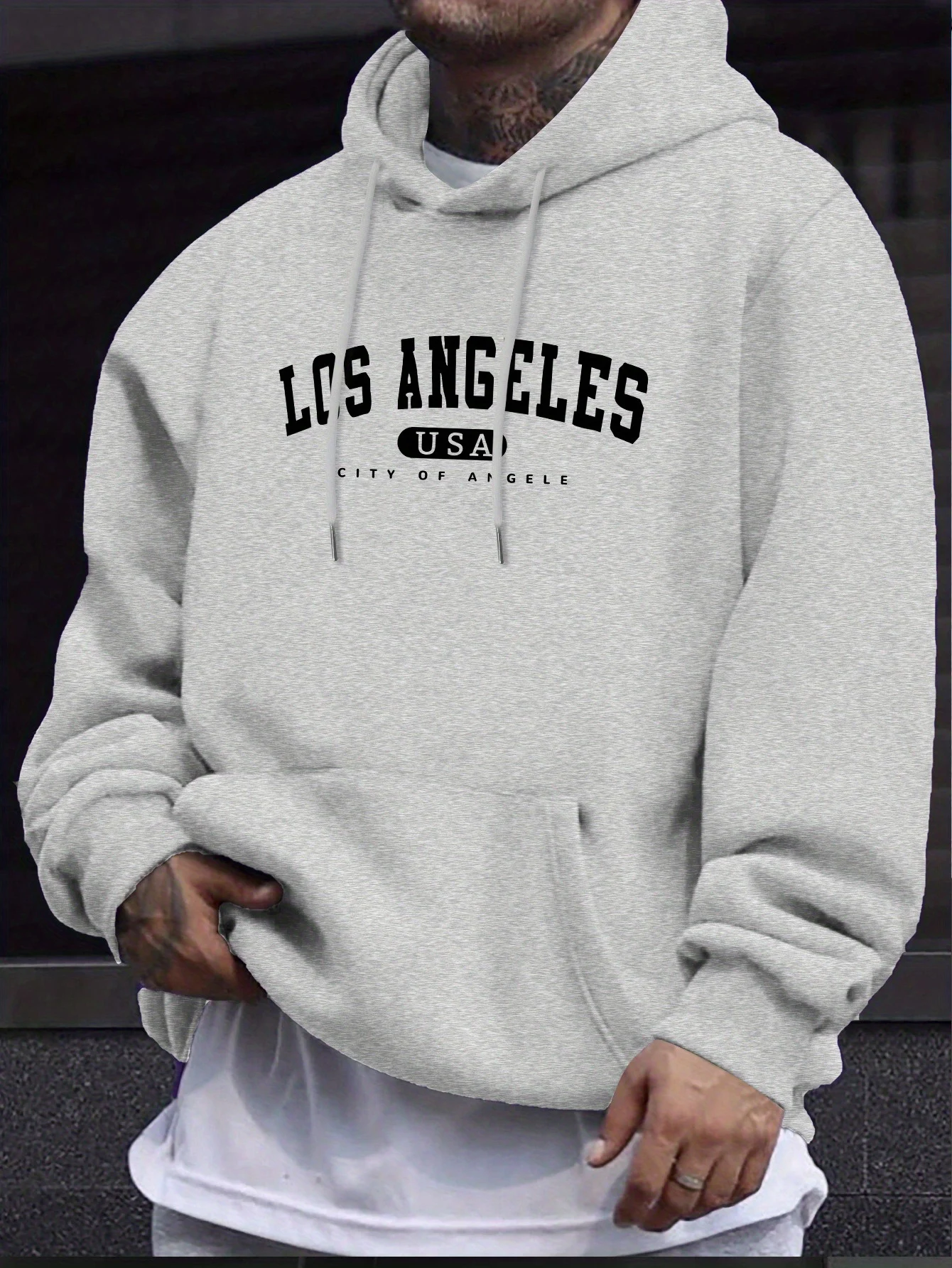 Los Angeles Usa Print Men_s Manica lunga con coulisse Stampa Felpe con cappuccio Tshirt COTONE per uomo Casual Autunno Inverno