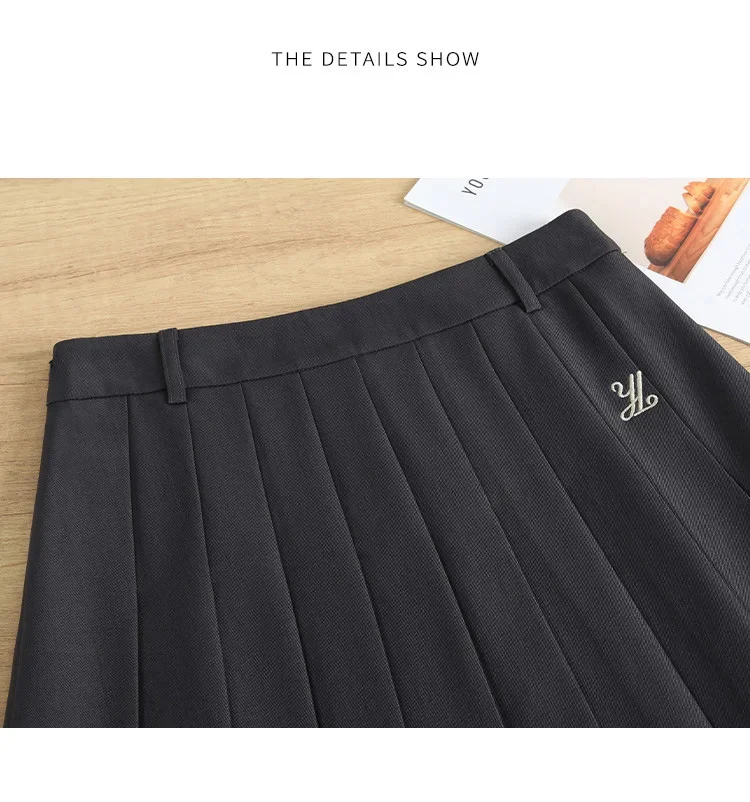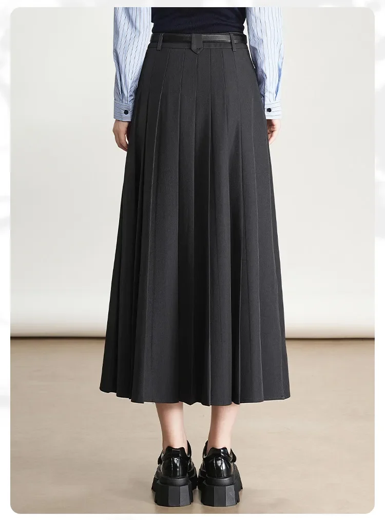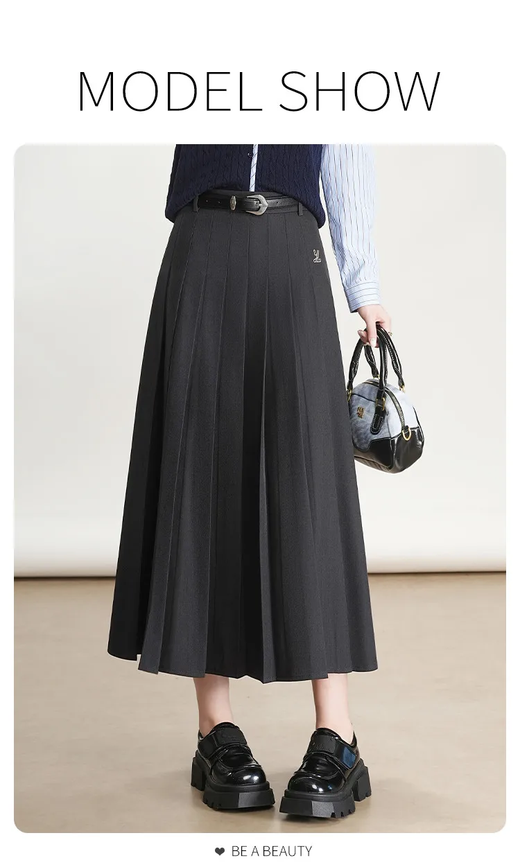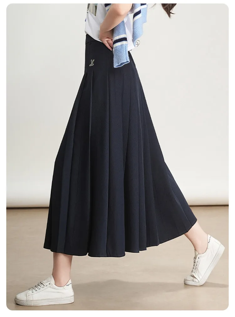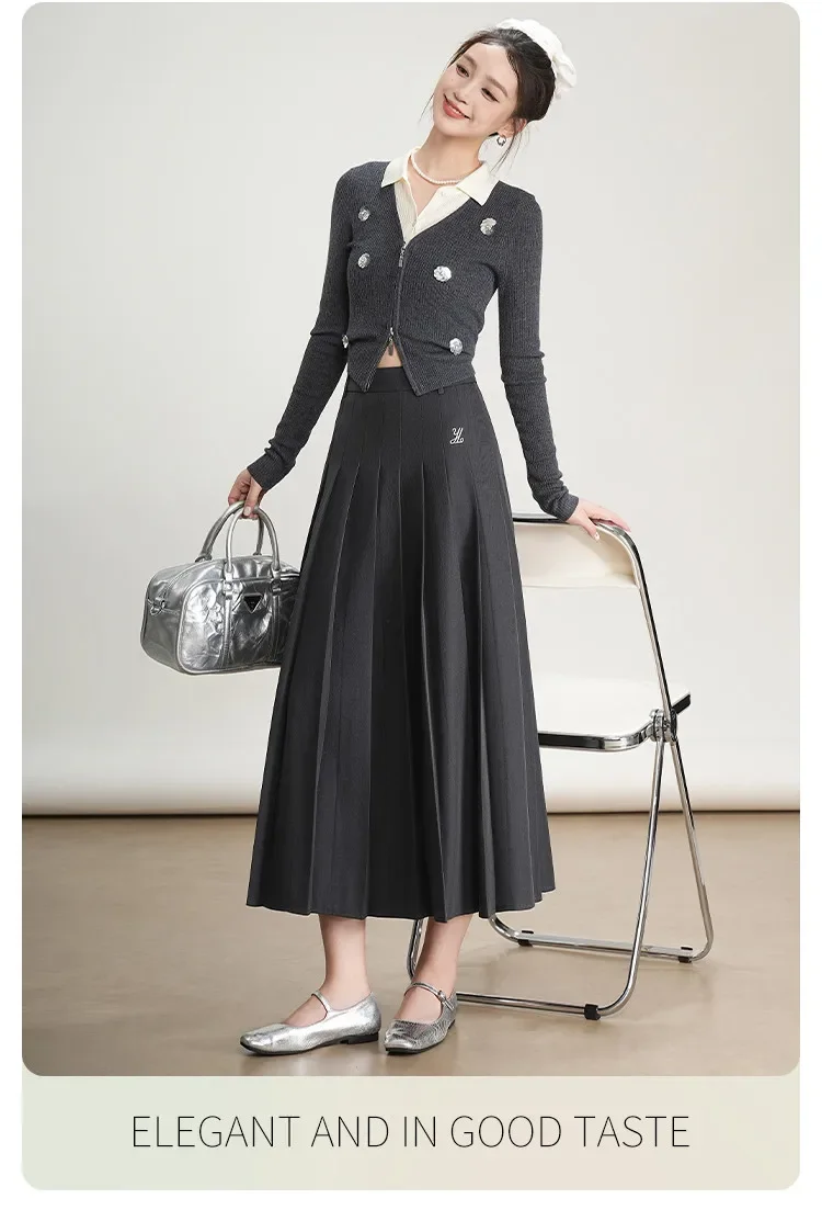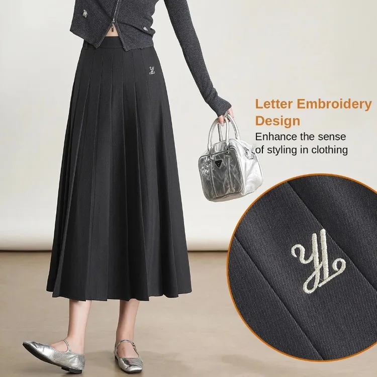 LOUIS YAO Nuova semplice gonna a pieghe ricamata da donna 2025 Autunno tinta unita con pieghe strutturate Gonna lunga a trapezio Elegante