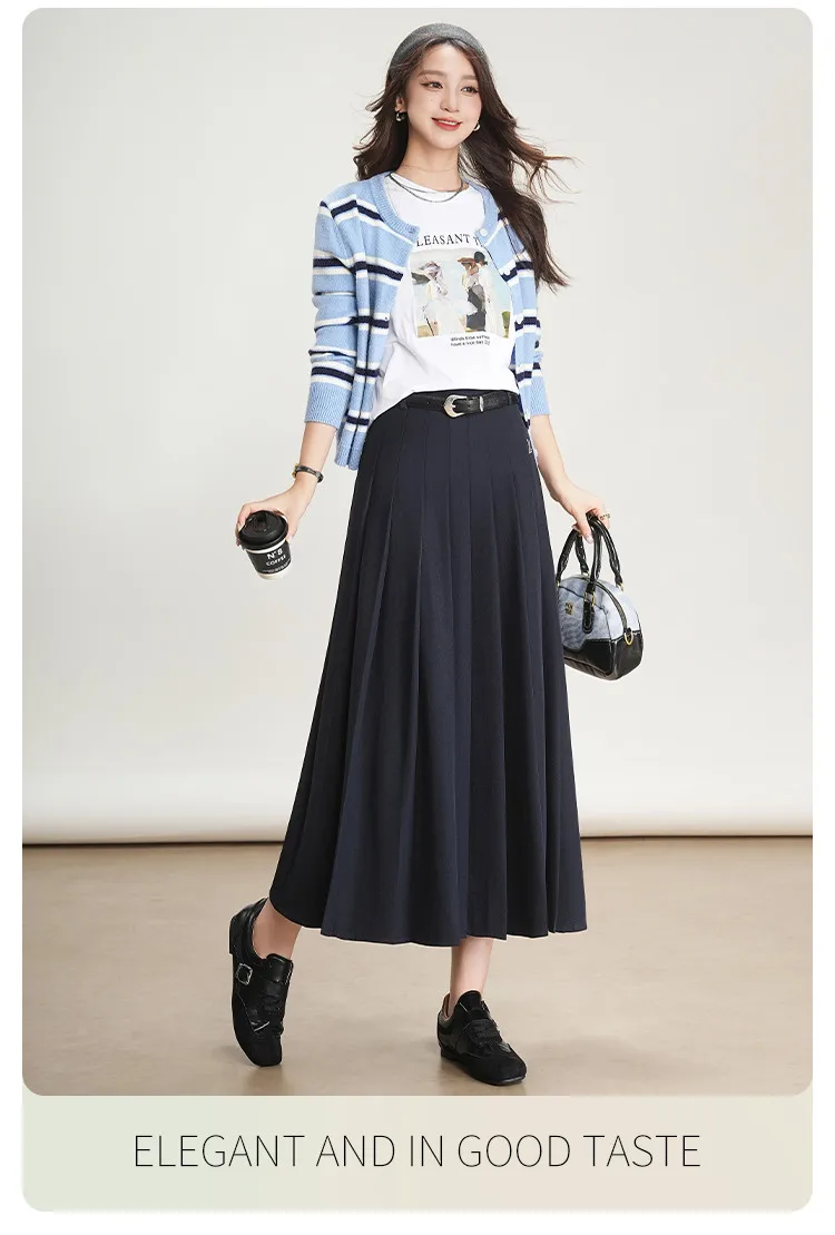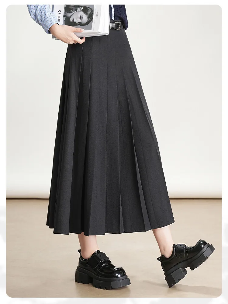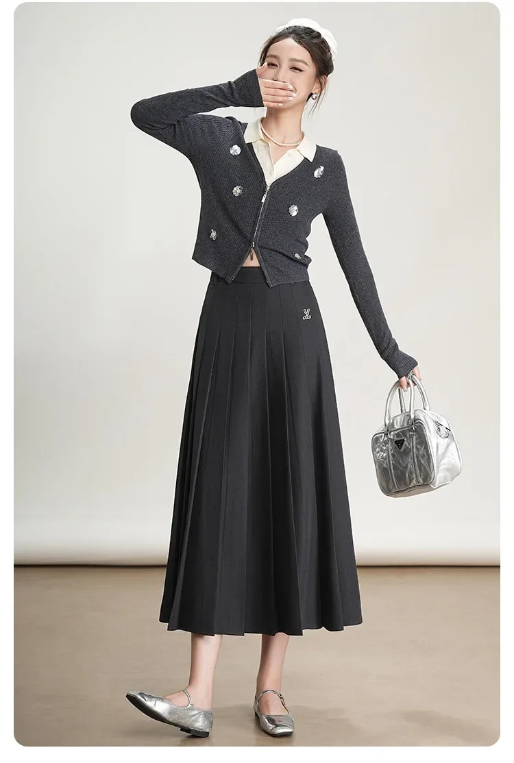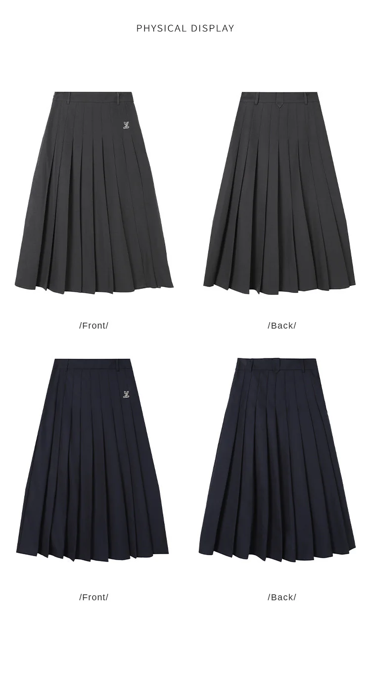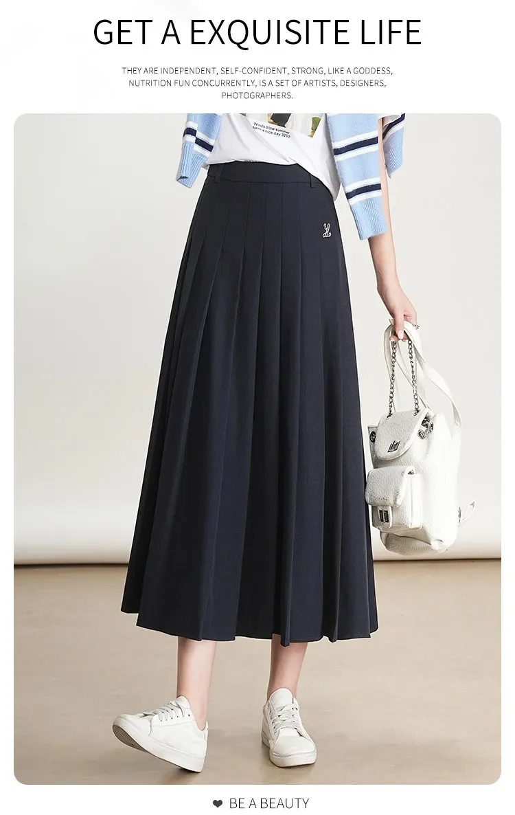 LOUIS YAO Nuova semplice gonna a pieghe ricamata da donna 2025 Autunno tinta unita con pieghe strutturate Gonna lunga a trapezio Elegante