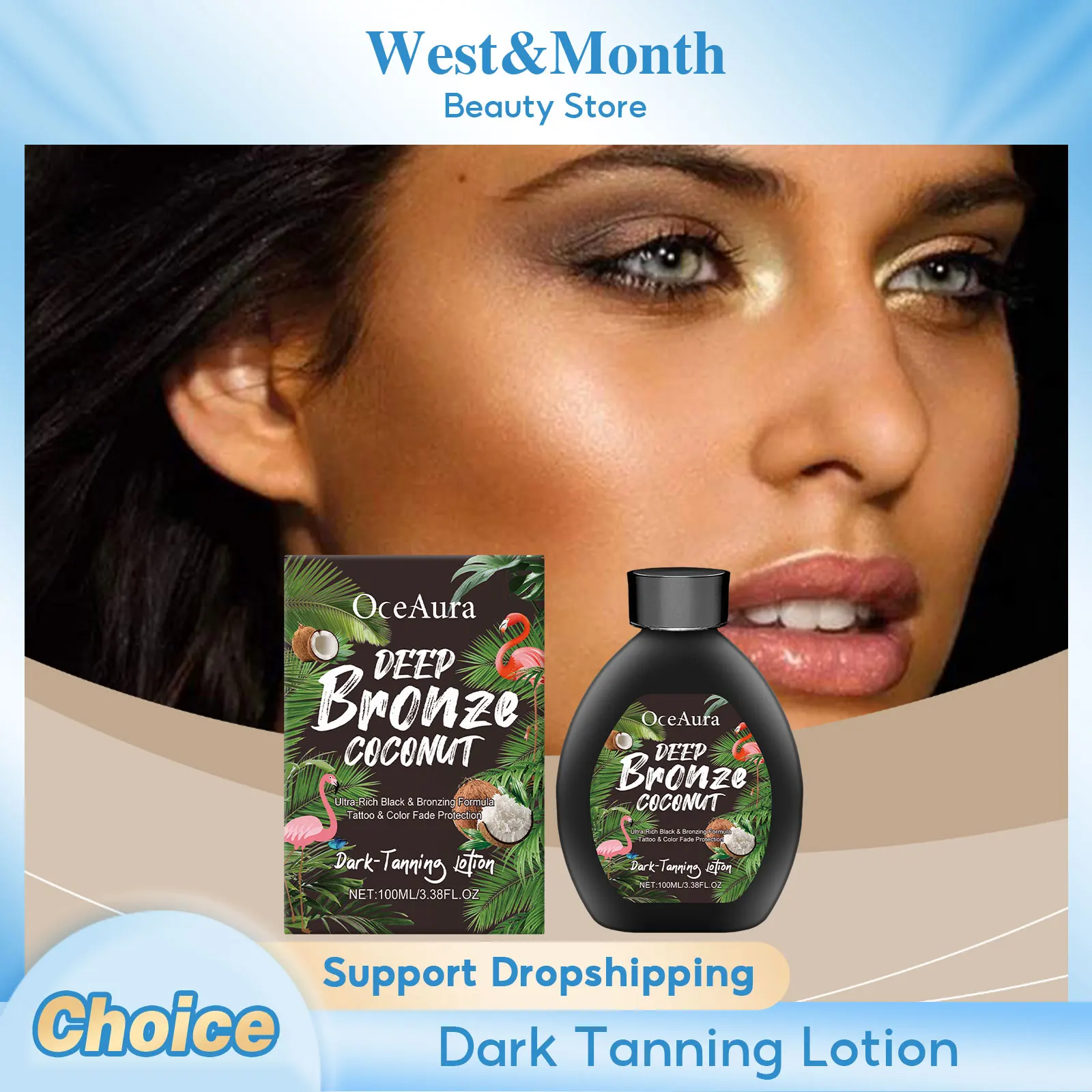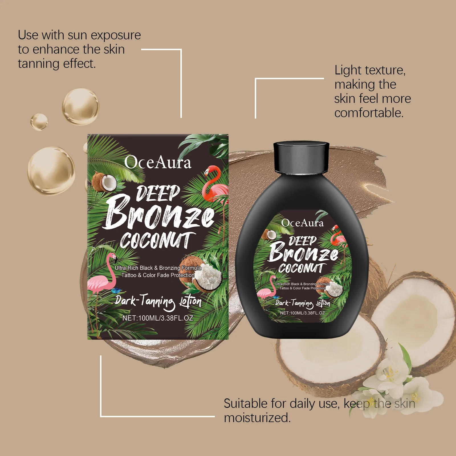 OceAura Lozione abbronzante al cocco Abbronzante senza sole Rinforzatore abbronzante Booster oscurante Idrata Lozione autobloccante per lettini sexy marrone dorato 100ml