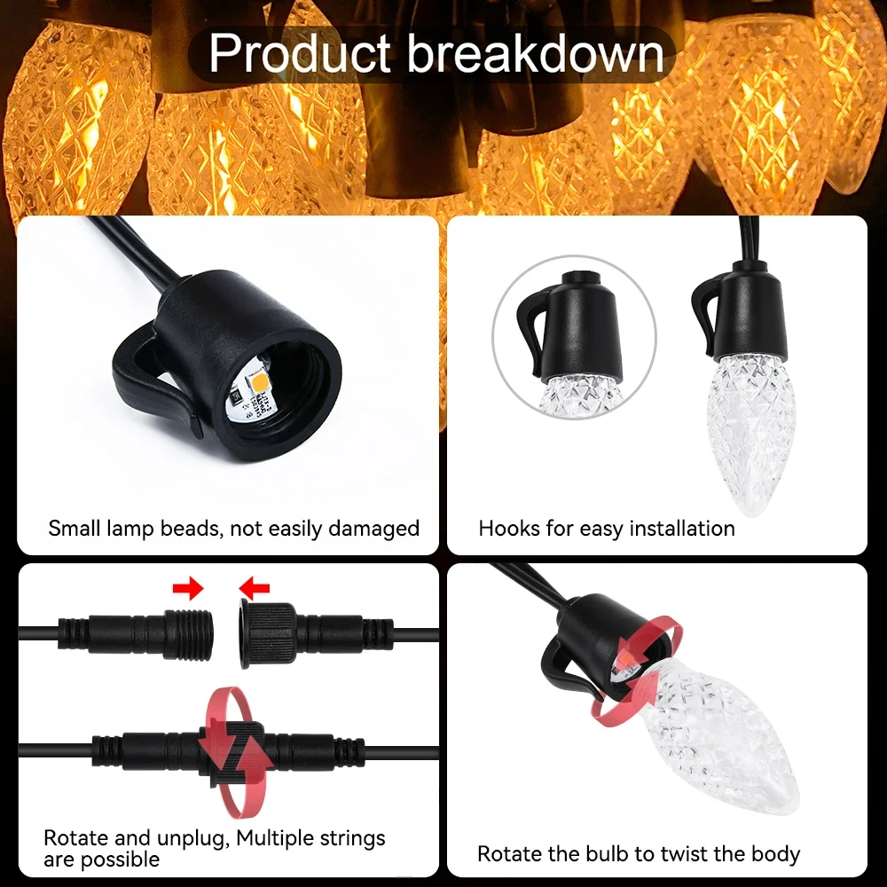 C35 15M 20 luci a stringa a LED per esterni luci a stringa impermeabili telecomando dimmerabile per la decorazione della festa della camera da letto del giardino