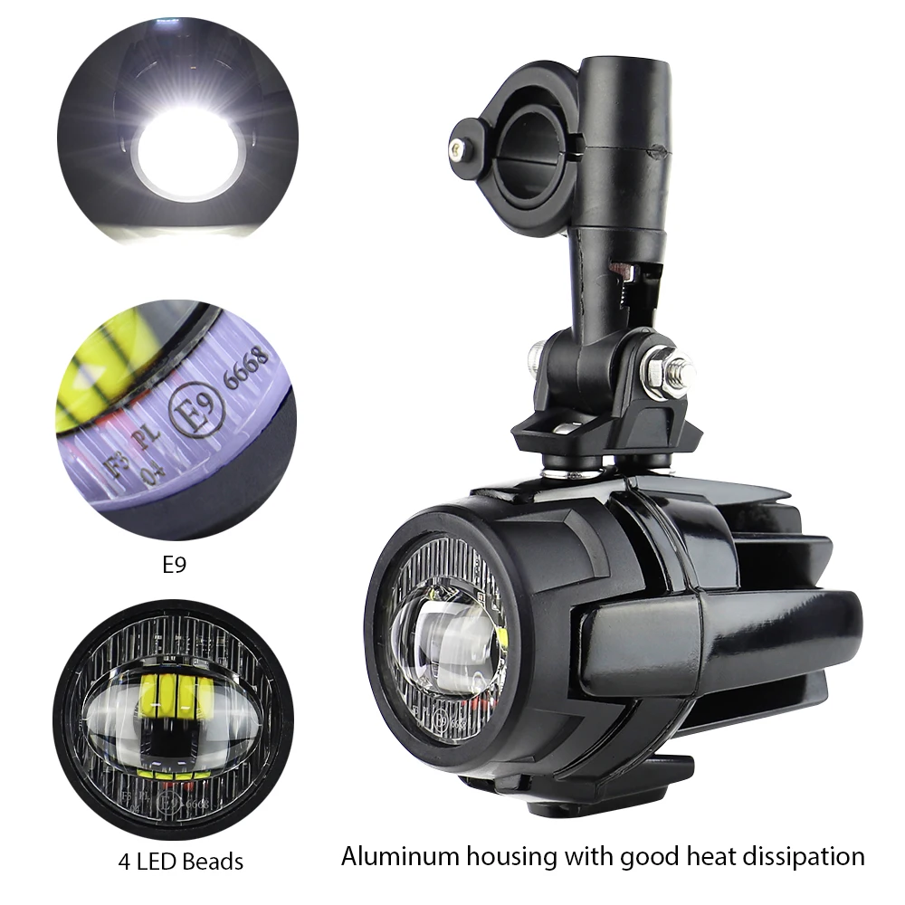 Luci ausiliarie LED Spot Fendinebbia per guida per R1200GS F800GS K1600 Lampade fendinebbia universali per moto 40W 6000KSpecifiche del prodotto:Luce ausiliaria a LED per motoPotenza: 40 W (20 W/pz)Voltaggio: CC 12-24 VLumen: 4000LM (2000LM/pz)Materiale: lente in PC, alloggiamento in alluminioCaratteristiche:Queste luci ausiliarie forniscono ulteriormente una luce più utilizzabilelungo la strada e ai lati,Lente per proiettore faretto ad alta trasmissione per il massimovisibilità in caso di nebbia,360° staffa di montaggio con regolazione universale.Pacchetto:2 luci ausiliarie a LED per moto (quando crei un ordine, puoi scegliere diverse combinazioni di accessori, conferma gli accessori di cui hai bisogno)