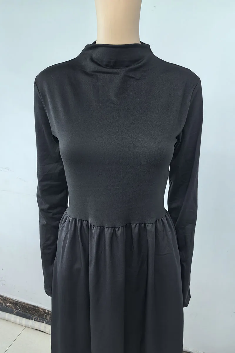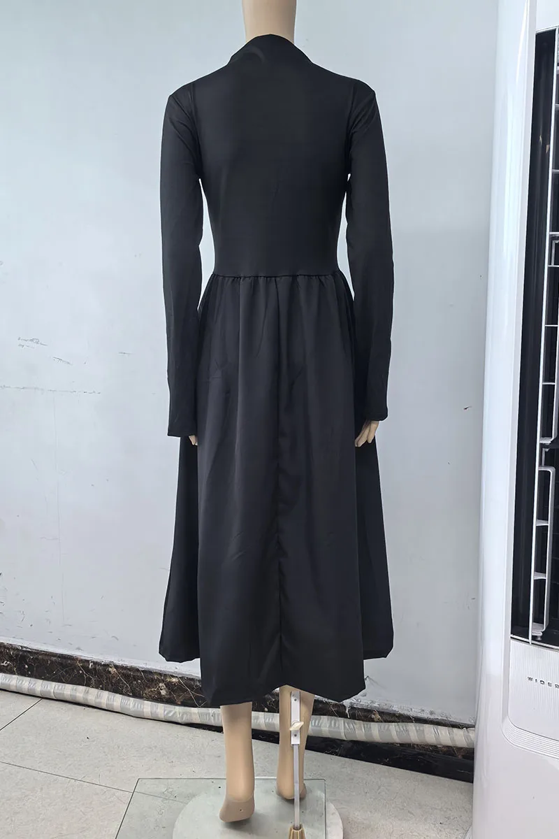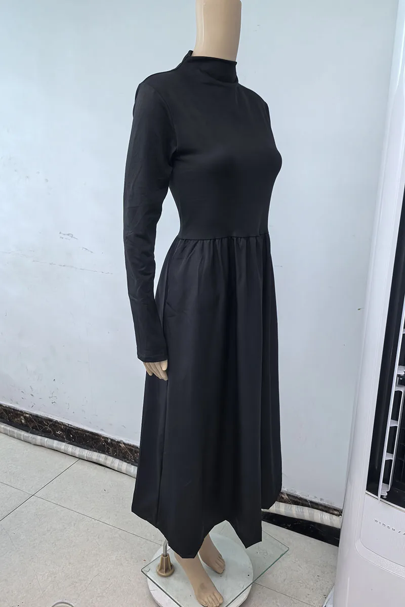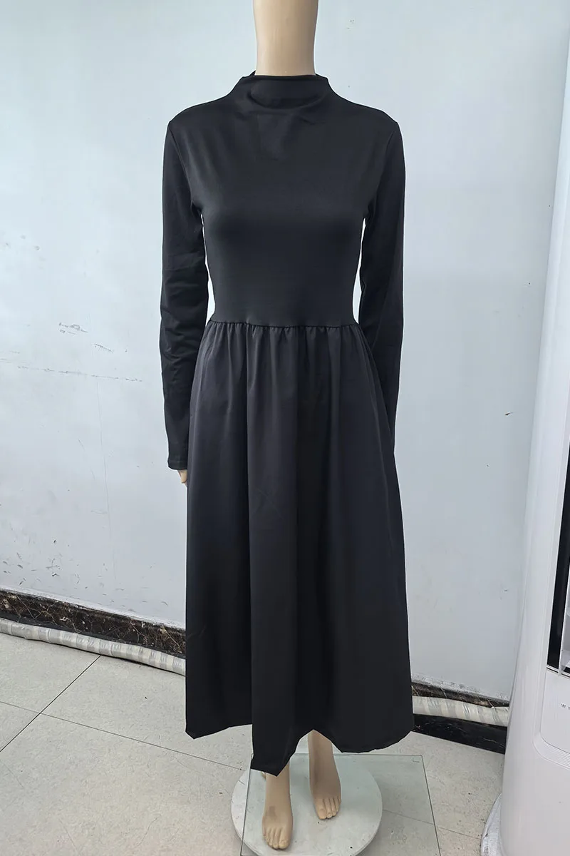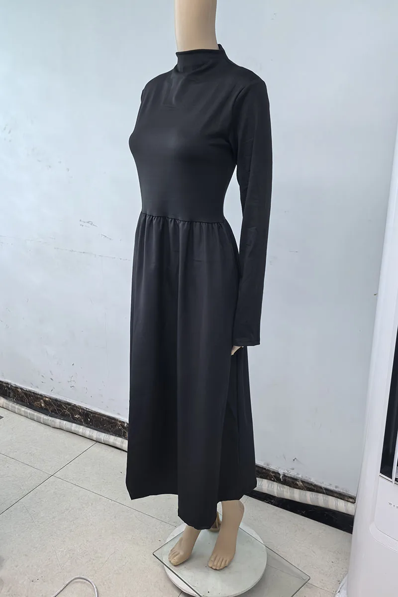 Lucyever Abiti a trapezio neri stile francese Abito longuette elegante a maniche lunghe a vita alta da donna Abito maxi slim fit autunno inverno