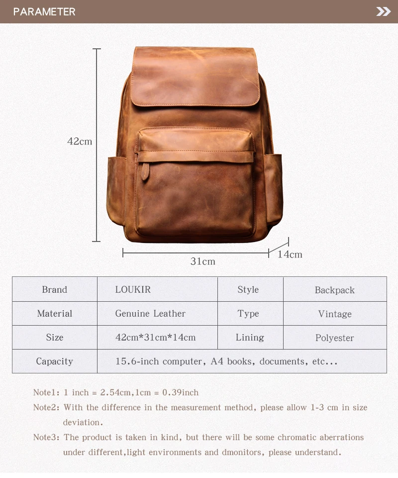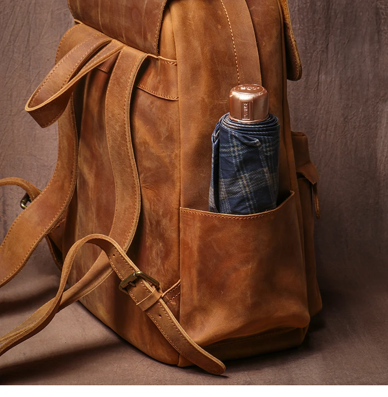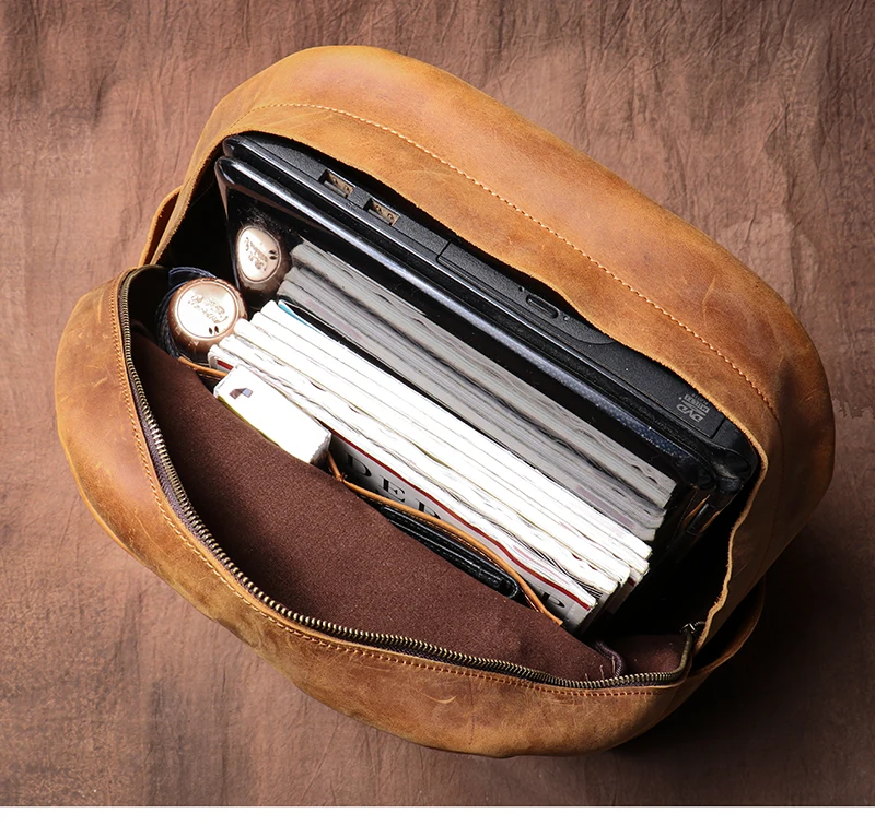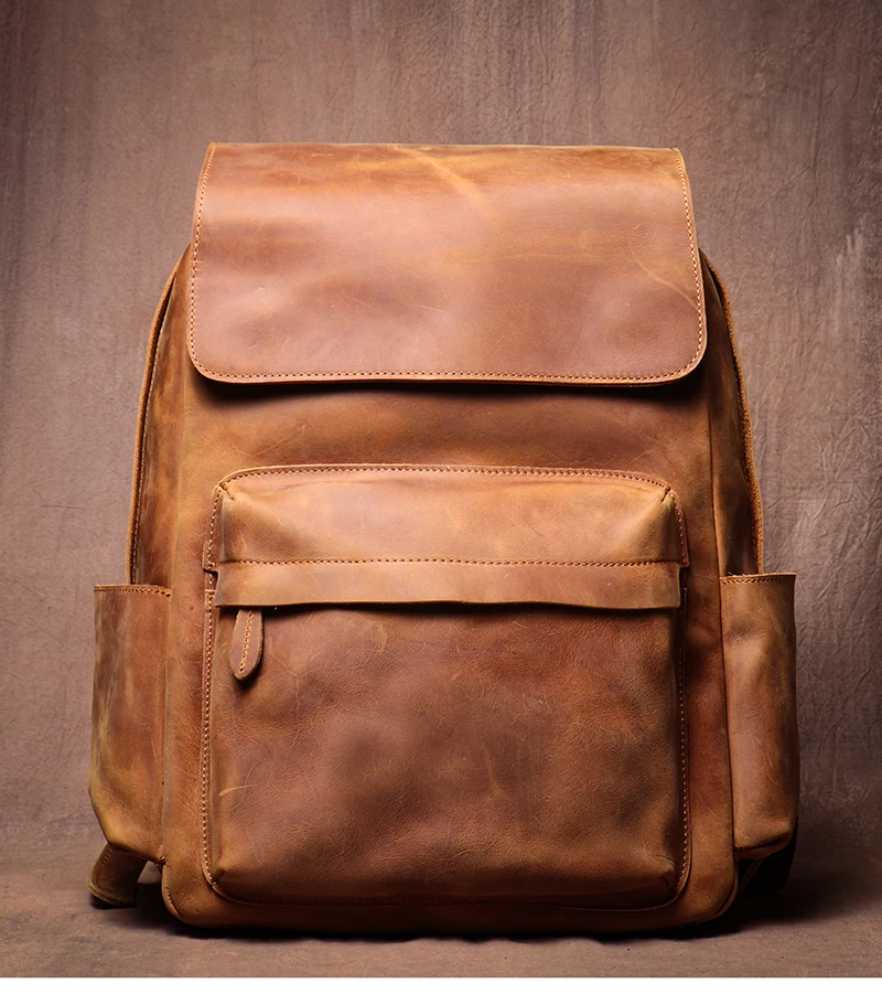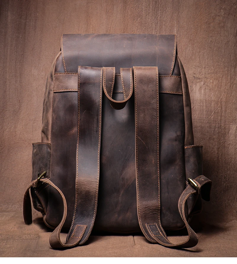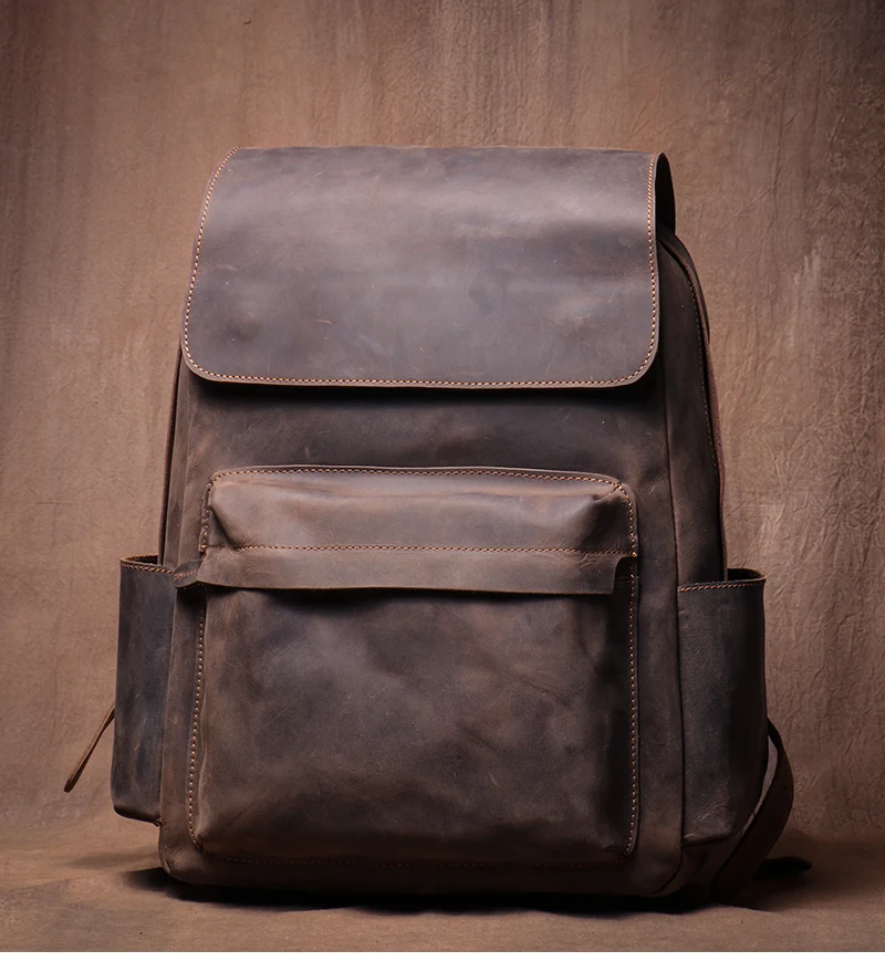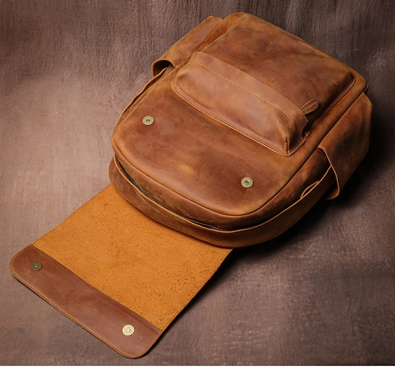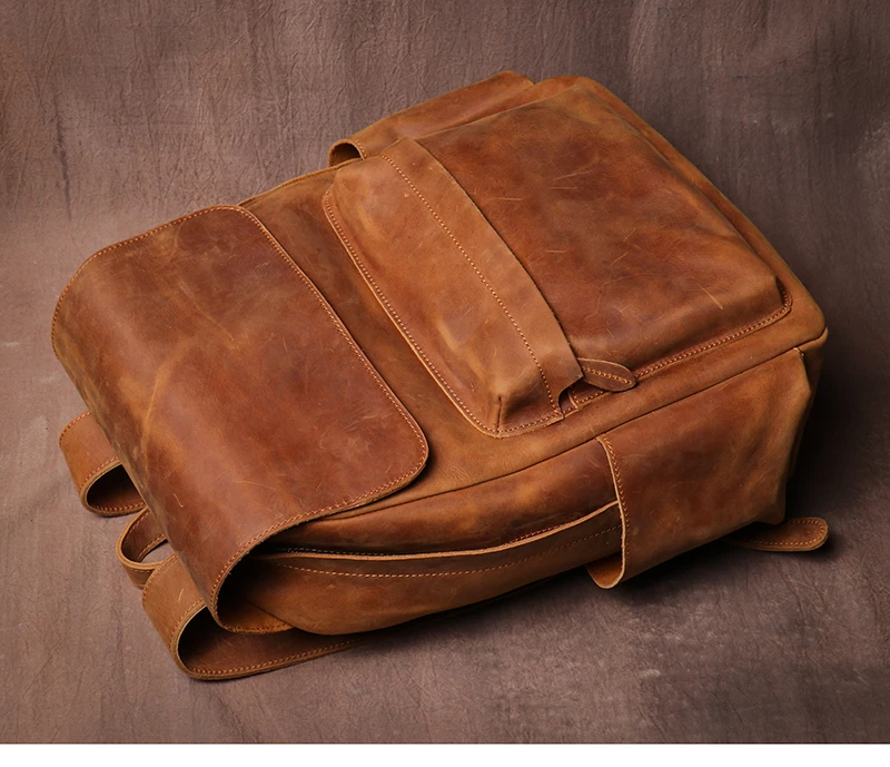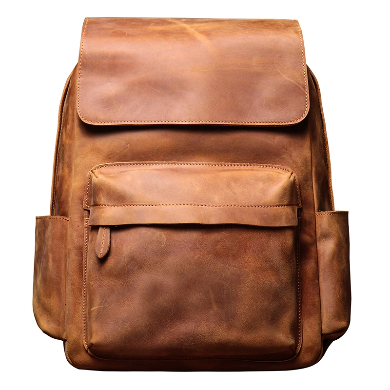 LUOKIR Zaino in vera pelle di alta qualità Zaino per computer di lusso in pelle di vacchetta Crazy Horse vintage per laptop da 15 pollici