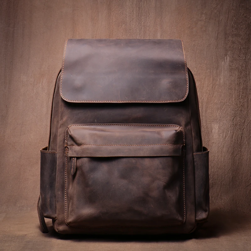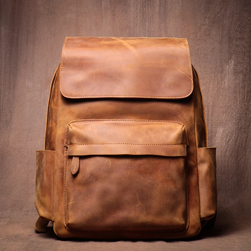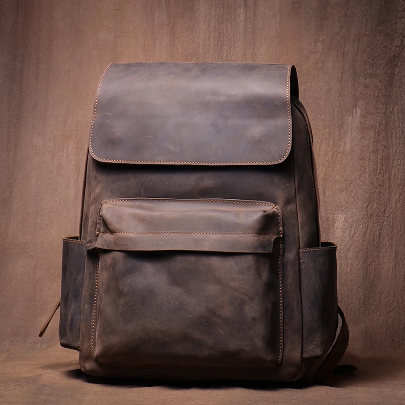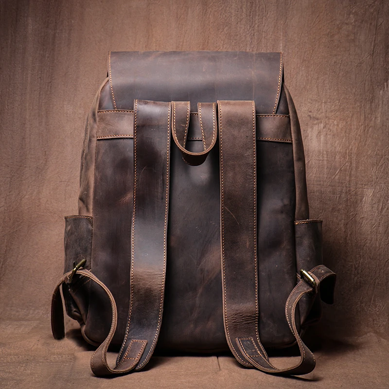 LUOKIR Zaino in vera pelle di alta qualità Zaino per computer di lusso in pelle di vacchetta Crazy Horse vintage per laptop da 15 pollici
