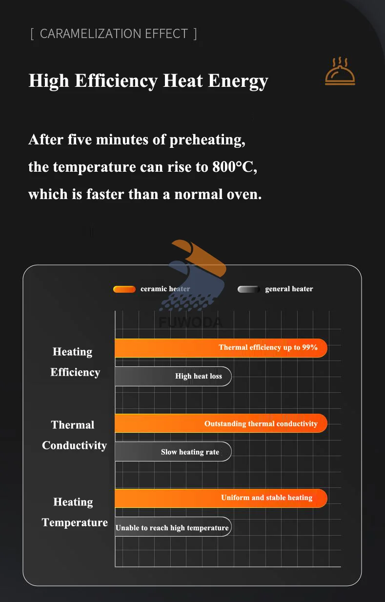 1. Preriscaldamento per 5 minuti, la temperatura può salire a 800 ° c.