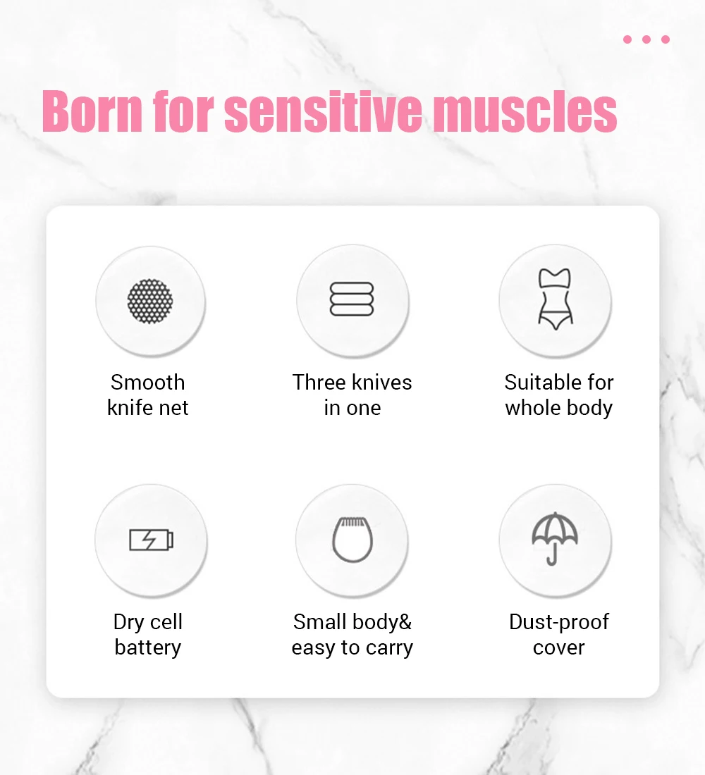 Capelli umani lisci e impeccabili, capelli per gambe, capelli per ascelle, tre coltelli in una pelle, mani libere, coltelli privati, design impermeabile, batteria a secco È necessario essere pulito e rinfrescante. Vedi il motore ad alta velocità con chip intelligente per ti dà un’esperienza più comoda