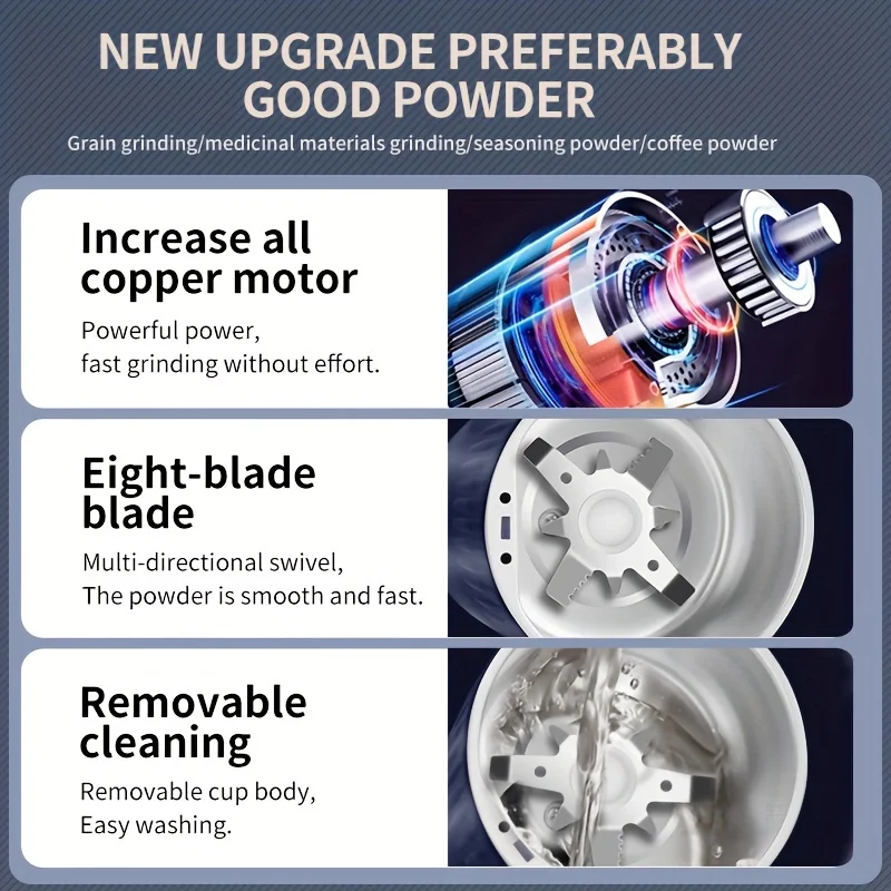 Macinacaffè elettrico a 8 lame macinacaffè elettrico per spezie robot da cucina, 200W potente macinaspezie elettrico, mulini per cereali 1Macinacaffè elettrico a 8 lame macinacaffè elettrico per spezie robot da cucina, 200W potente macinaspezie elettrico, mulini per cereali