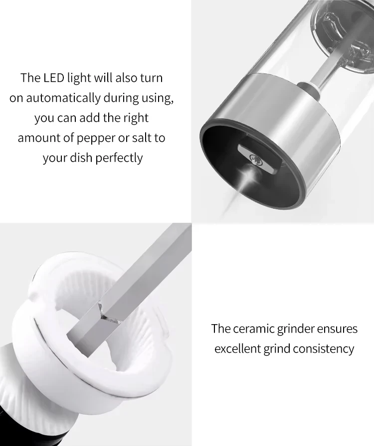 5.Grande silo trasparente (95ml) con una visione positiva dell’equilibrio peperone/sale