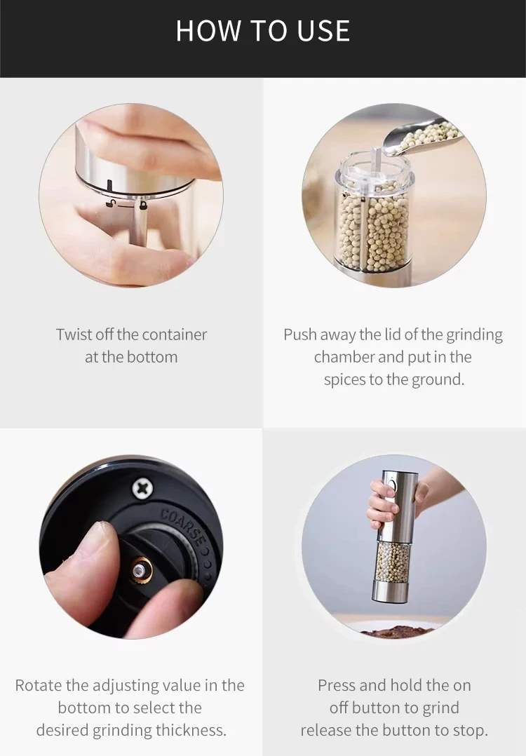 1.2 set di combinazioni, uno per macinare il sale, uno per macinare il pepe e un set per risolvere il problema della macinazione del condimento