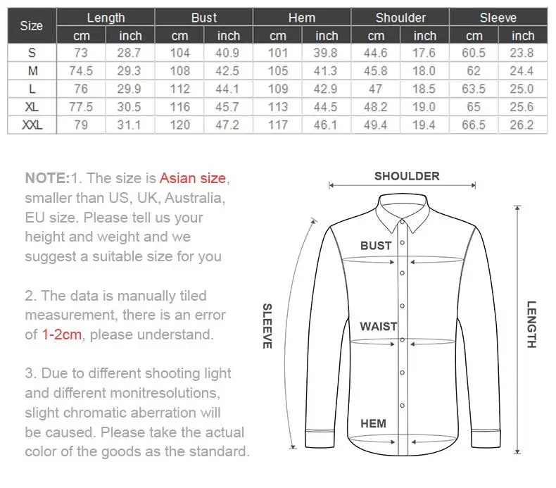 Si prega di seguire rigorosamente la tabella delle taglie per selezionare la taglia.Non selezionare direttamente in base alle tue abitudini. Questa è la dimensione dell’Asia, più piccola della dimensione UE/USA. La dimensione può variare di 1-2 cm a causa della misurazione manuale.