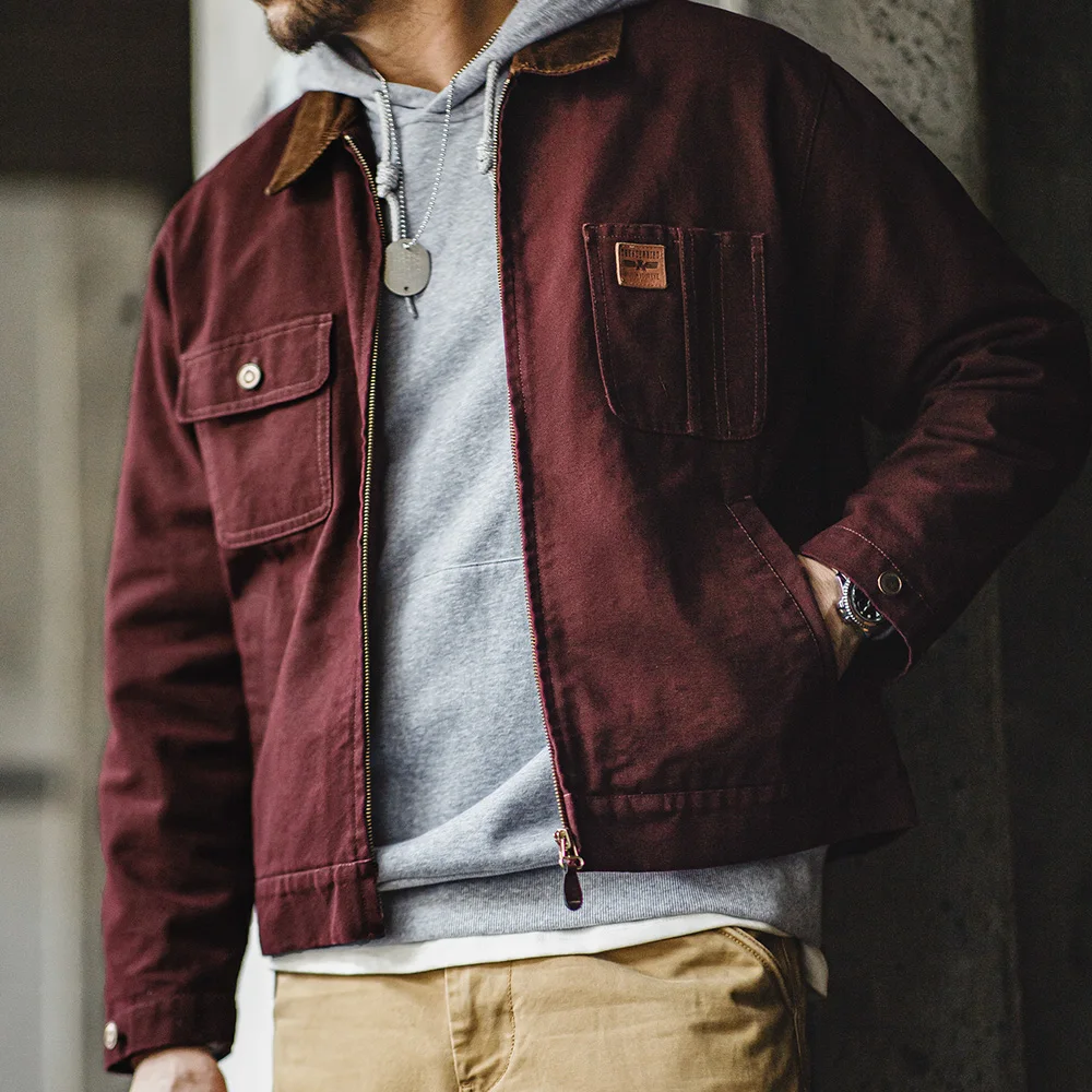 Maden Giacca Detroit in tela pesante retrò Colletto in velluto a coste Giacca corta da caccia con cerniera con tasche Capispalla autunnale da uomo