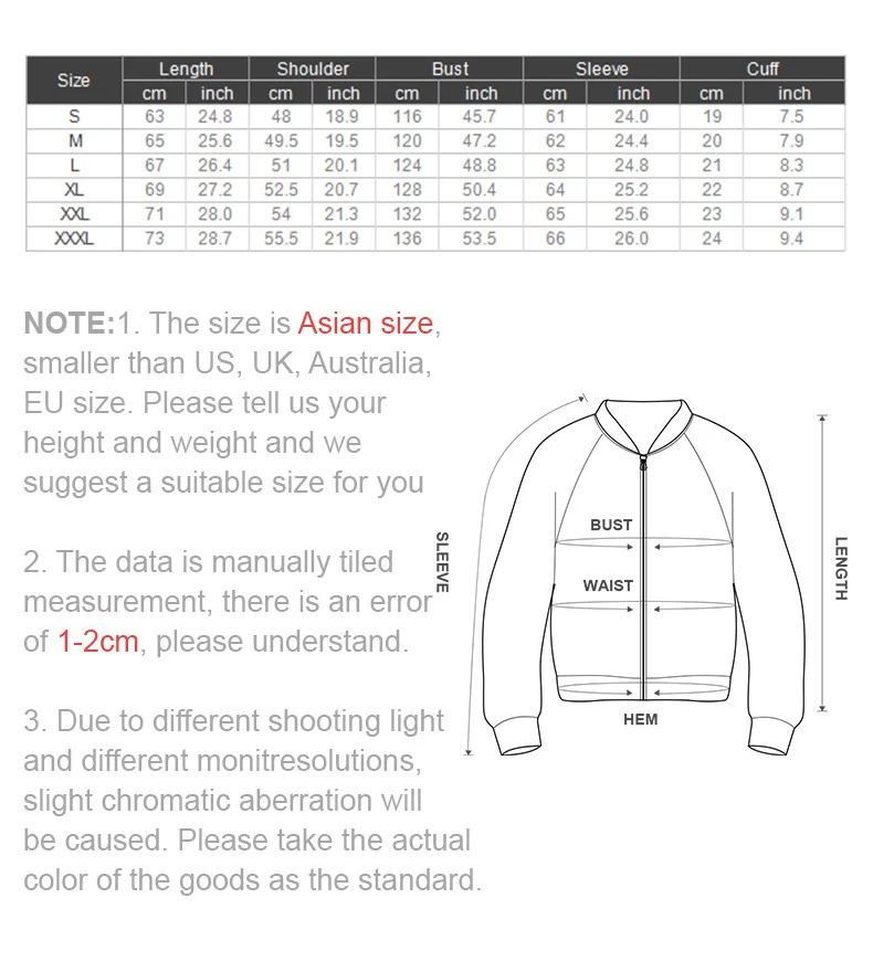 1.La taglia è di taglia asiatica, più piccola della taglia USA/Regno Unito/UE/Australia.Hai meglio scegliere 1-2 taglie più grandi.Se non sei salsicurato, ti preghiamo di dire la tua altezza e il peso e sugliamo una dimensione adatta per te.