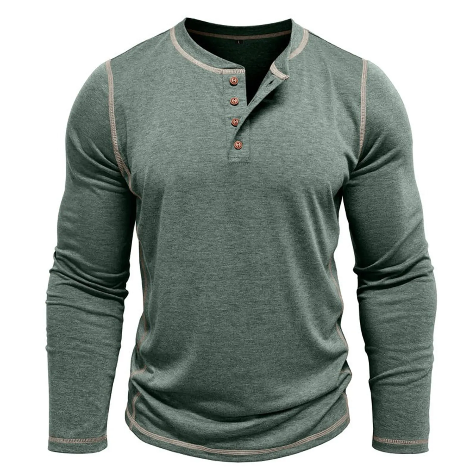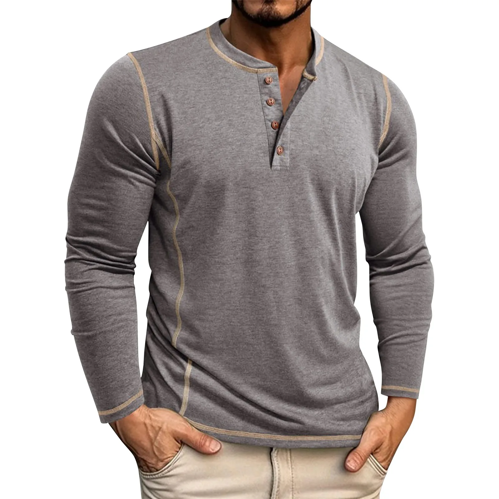 T-Shirt da uomo a maniche lunghe, camicia da uomo primaverile e autunnale, Top a quattro bottoni