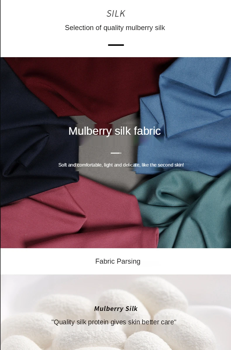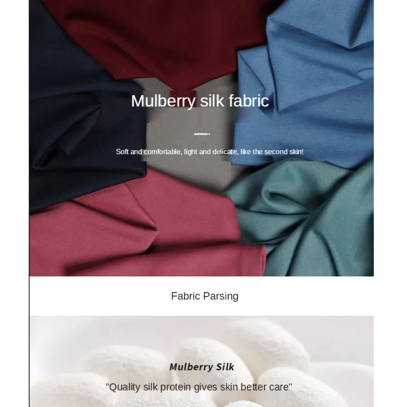 Fabric composition: 5.8% mulberry silk, 47.4% modal fiber, 3.5% spandex, 43.2% polyester fiber