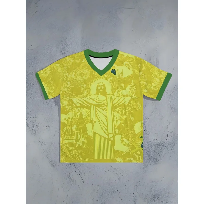 3 recensioni per Maglietta Gesù Dio stampata in 3D per uomo T-shirt modello bandiera Brasile Moda estiva Casual O-Collo T-shirt maniche corte larghe