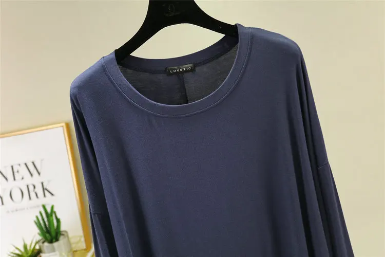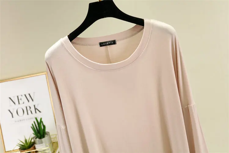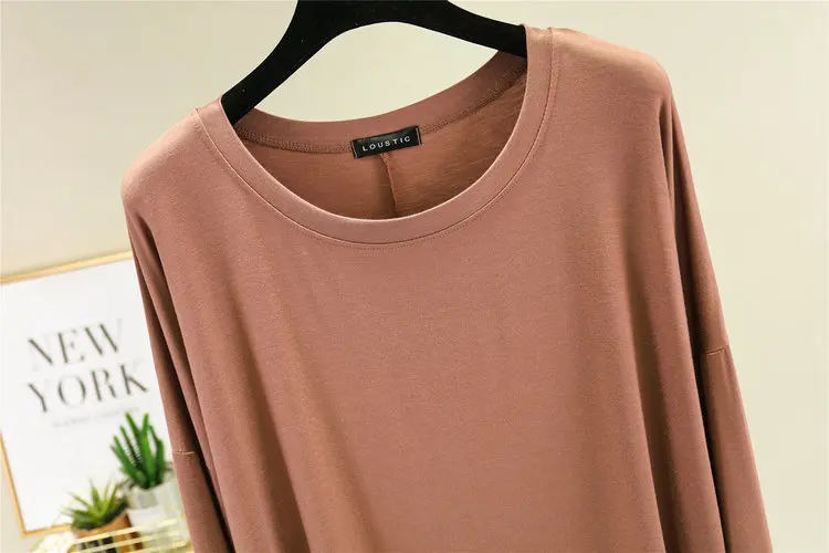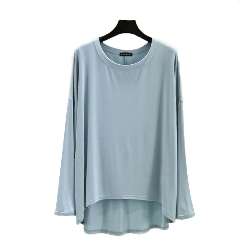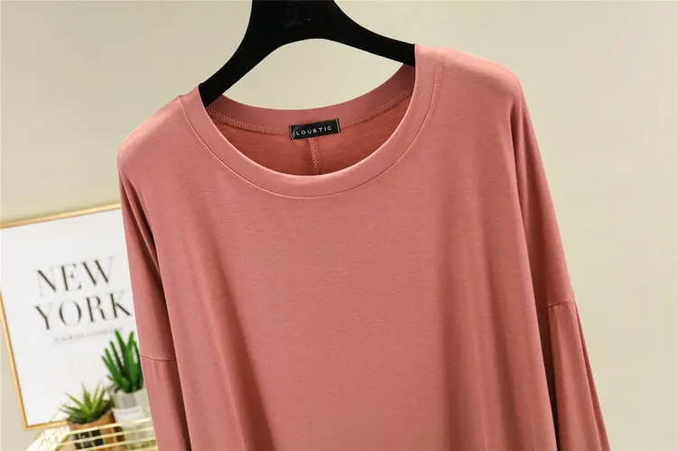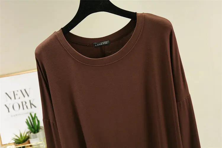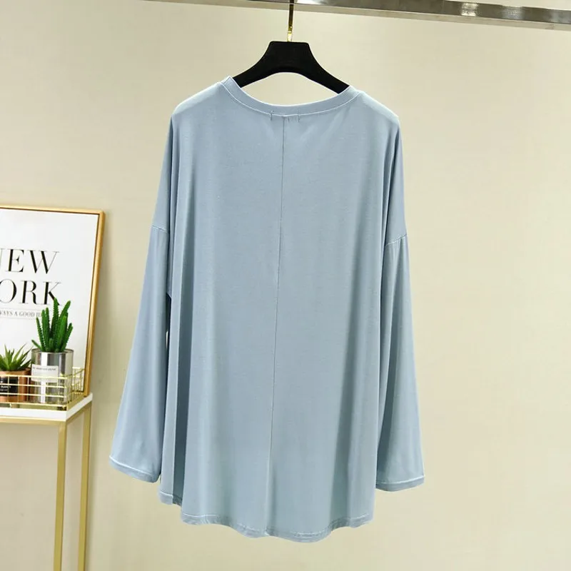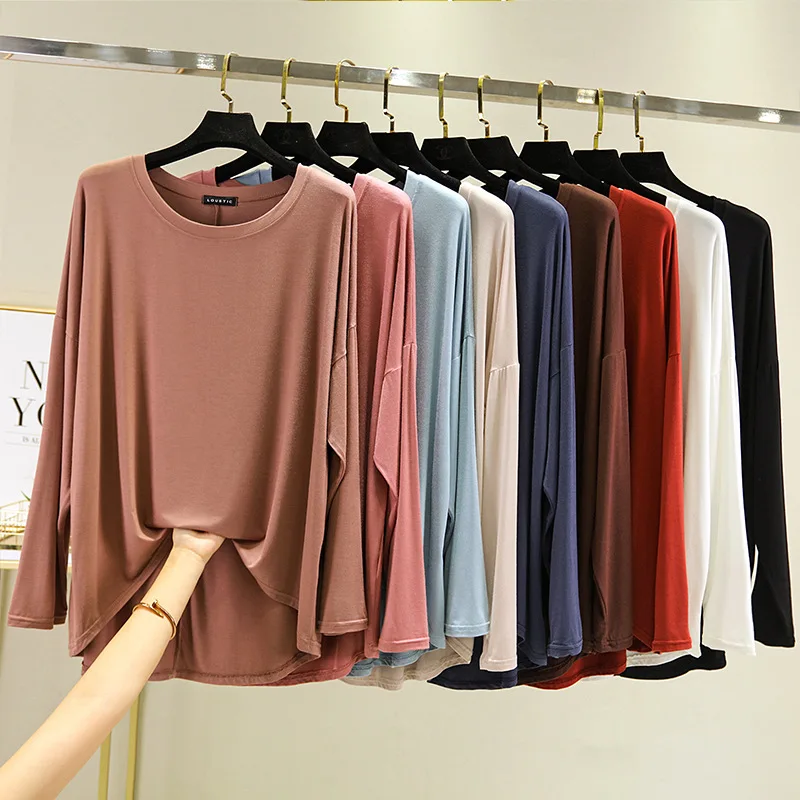 Magliette modali sottili e larghe Maniche lunghe Donna Autunno che tocca il fondo T-shirt O-Collo T-shirt tinta unita di grandi dimensioni Top basic