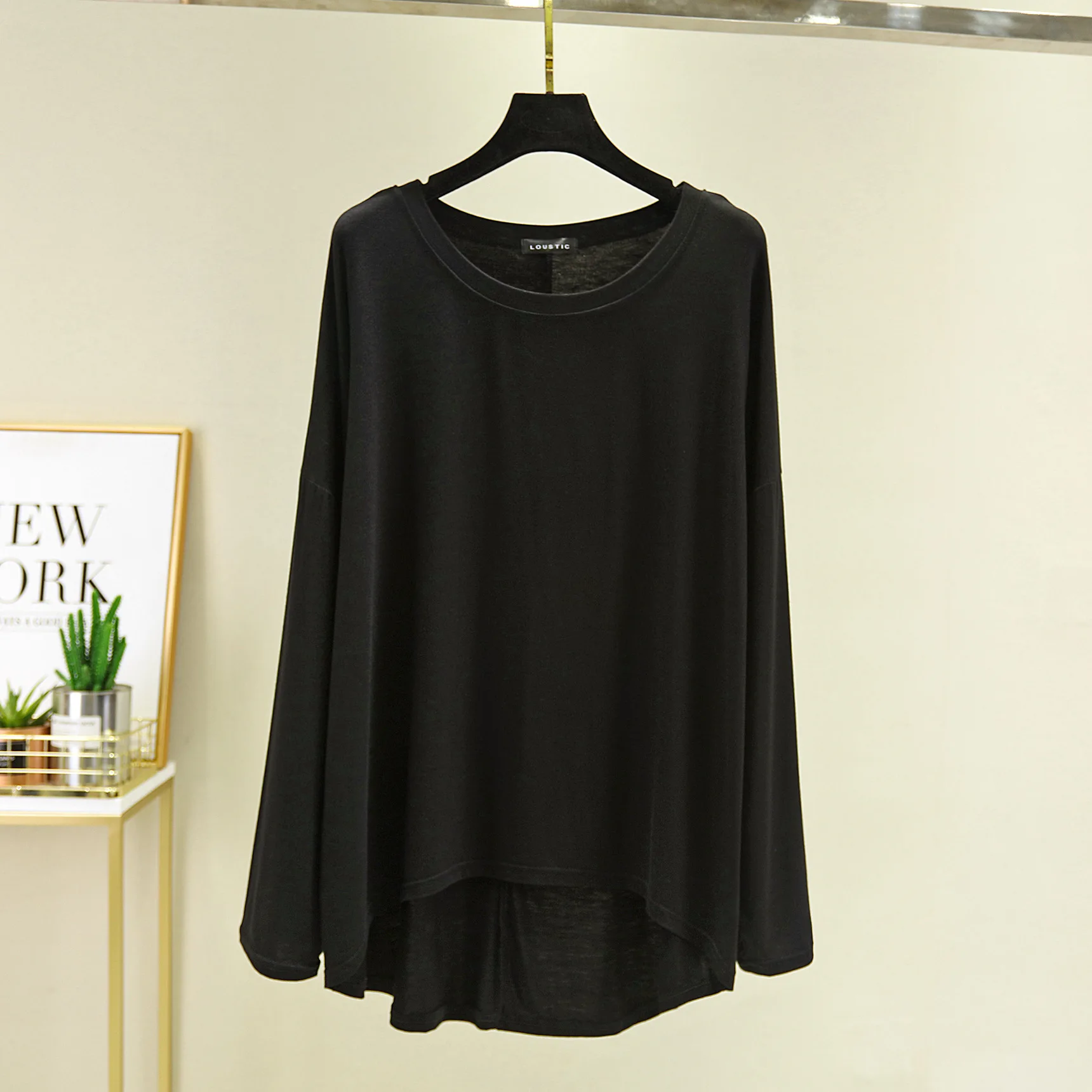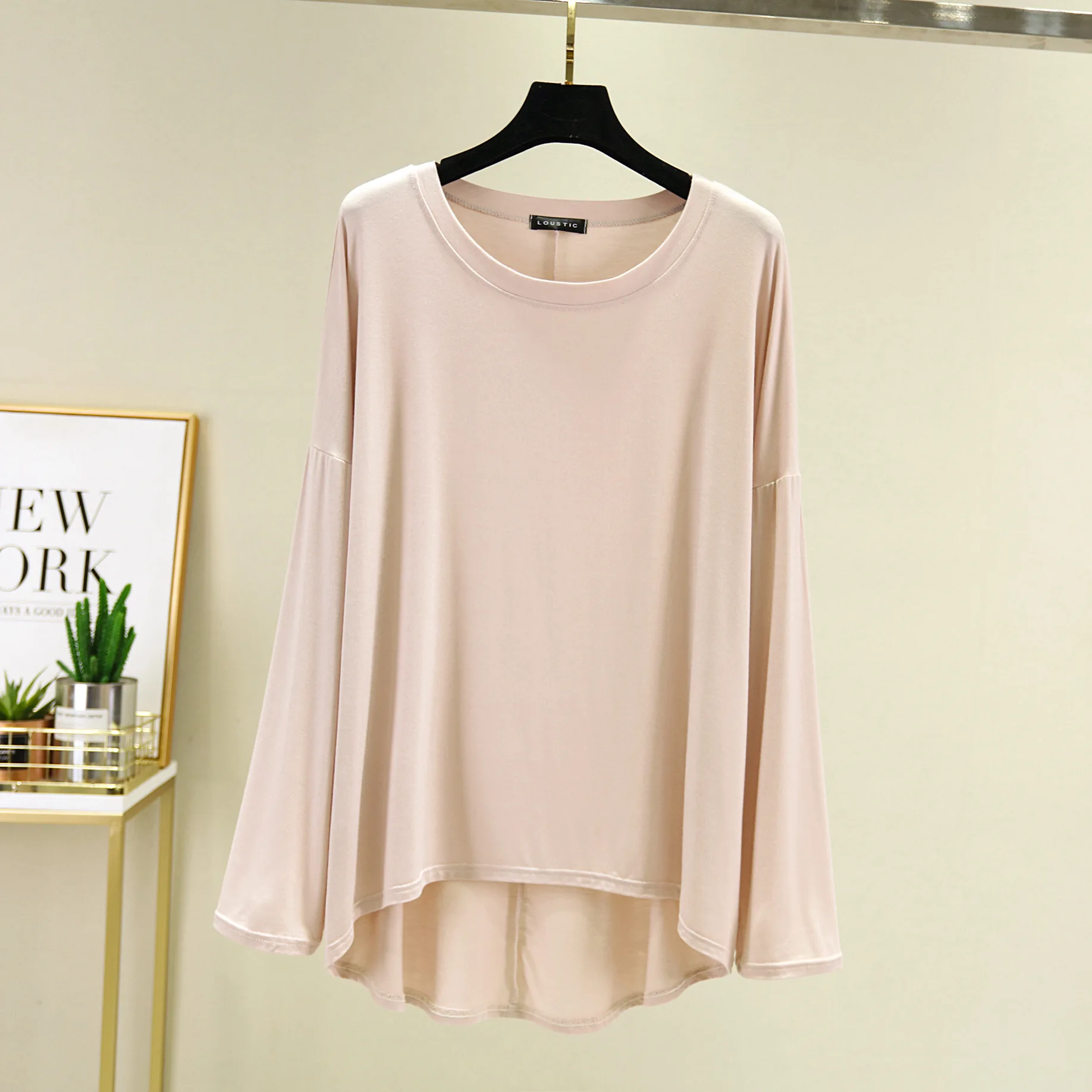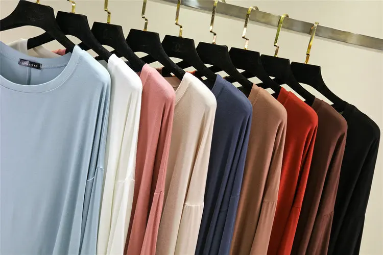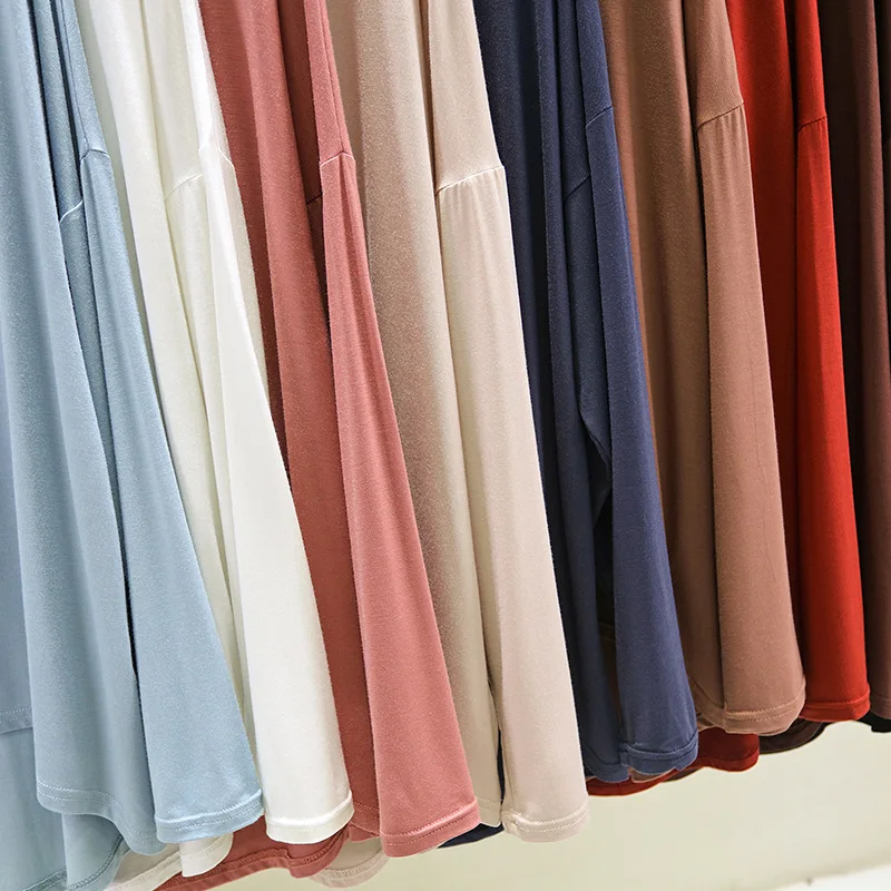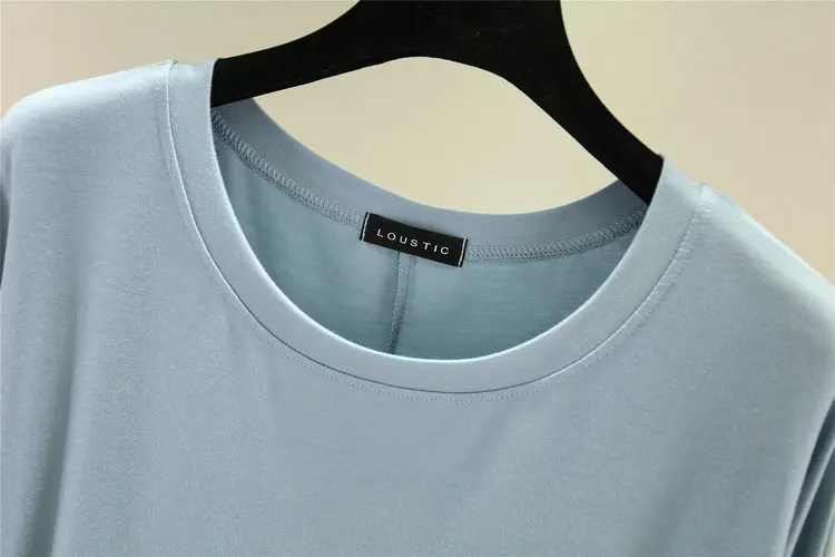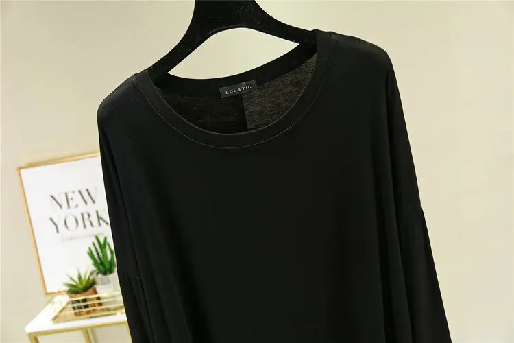 Magliette modali sottili e larghe Maniche lunghe Donna Autunno che tocca il fondo T-shirt O-Collo T-shirt tinta unita di grandi dimensioni Top basic