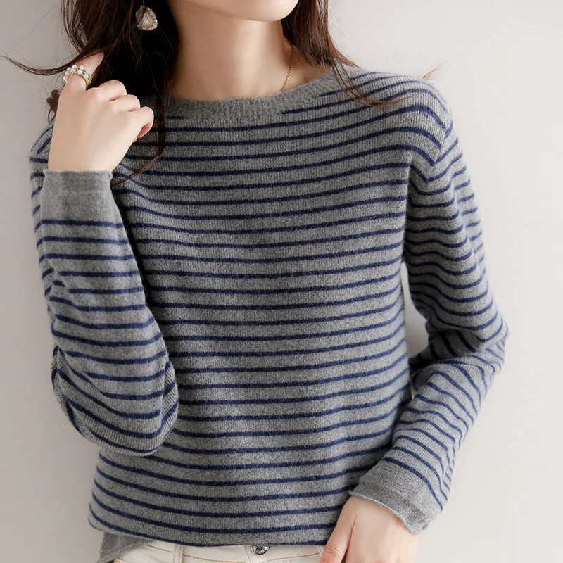 Maglione a righe con scollo a o da donna Harajuku Winter Retro women’s Thick Slim Stretch Warm Tops 2022 autunno Pullover lavorato a maglia