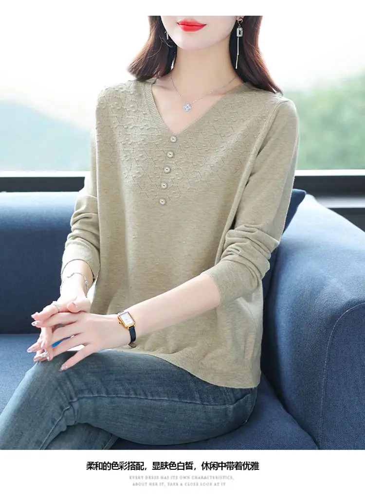 Maglione con scollo a V da donna sciolto di grandi dimensioni moda nuovo pullover alla moda top maglieria base versatile