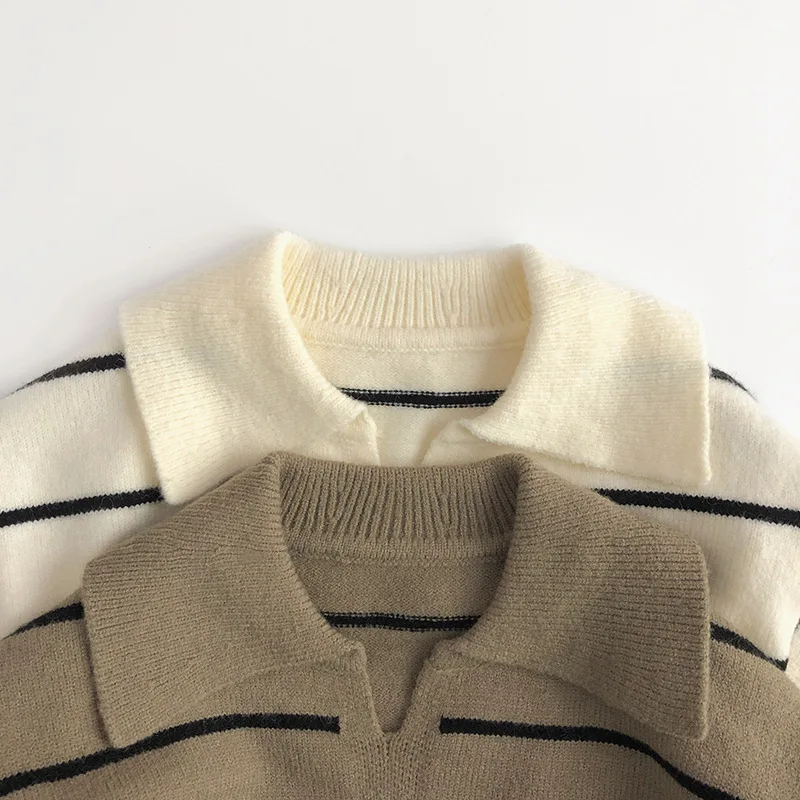 Maglione coreano a righe per bambini Primavera Autunno Pullover con scollo a V Ragazzi Maglione dolcevita in cotone Inverno Neonate Top Vestiti
