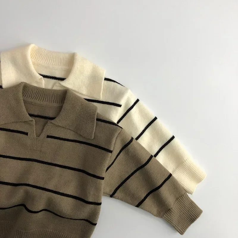 Maglione coreano a righe per bambini Primavera Autunno Pullover con scollo a V Ragazzi Maglione dolcevita in cotone Inverno Neonate Top Vestiti