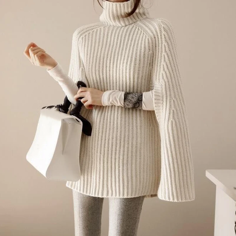 Donne Maglione A Manica Lunga Caldo Lavorato A Maglia Pullover Allentato Dolcevita 2021 Autunno e in Inverno Outwear Mantelle e Poncho Pullover C1980