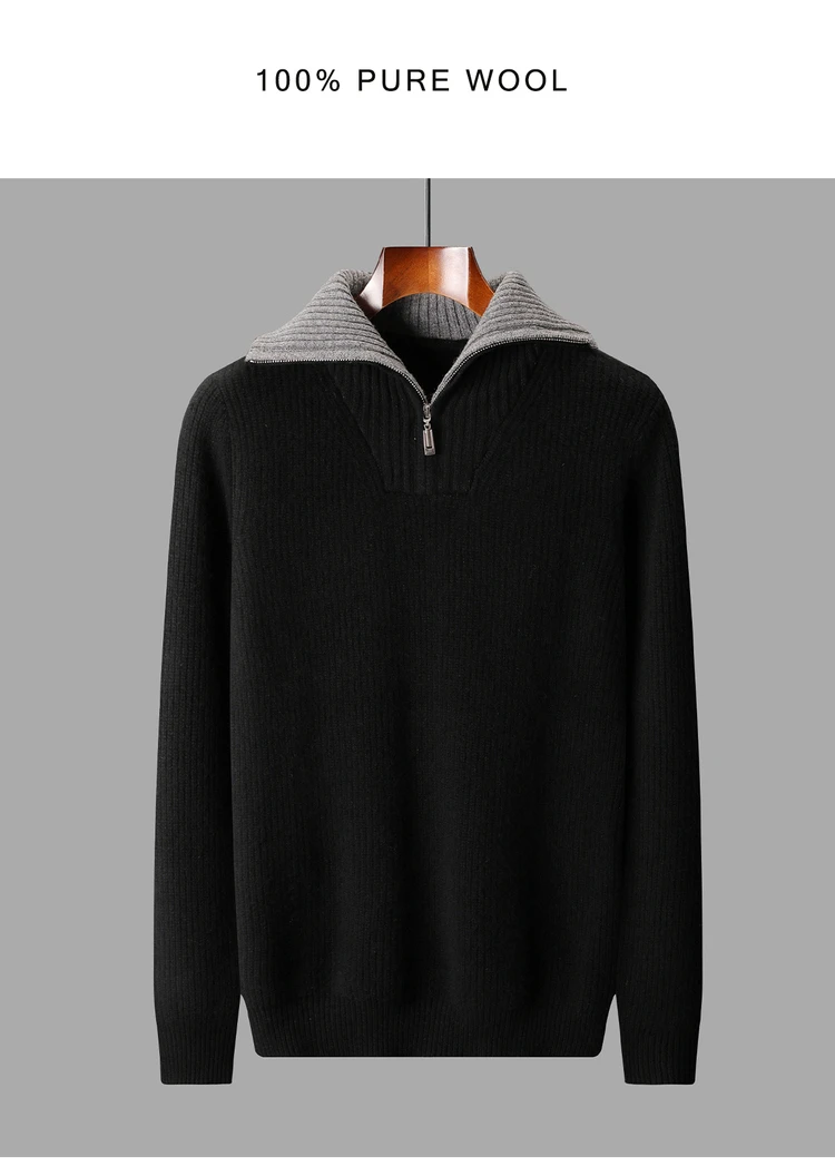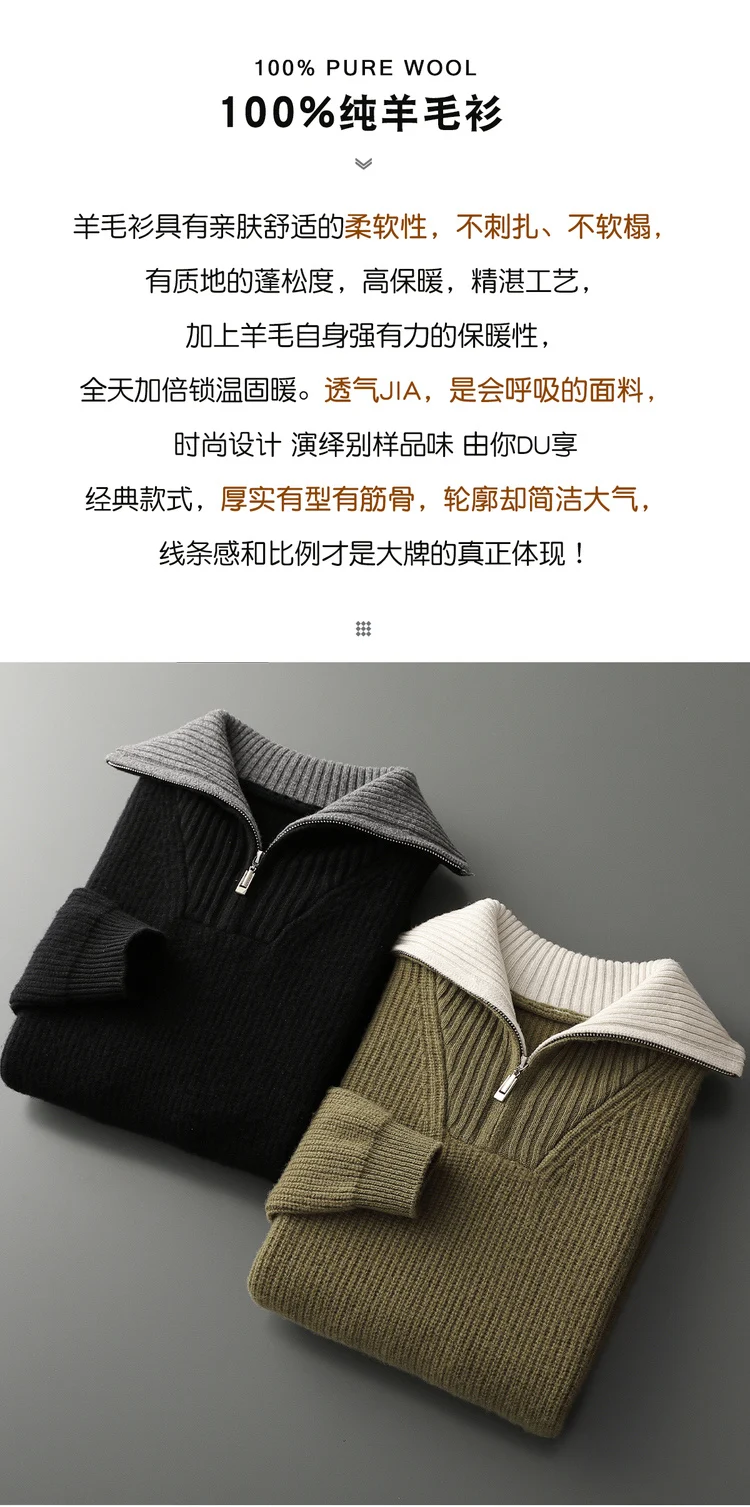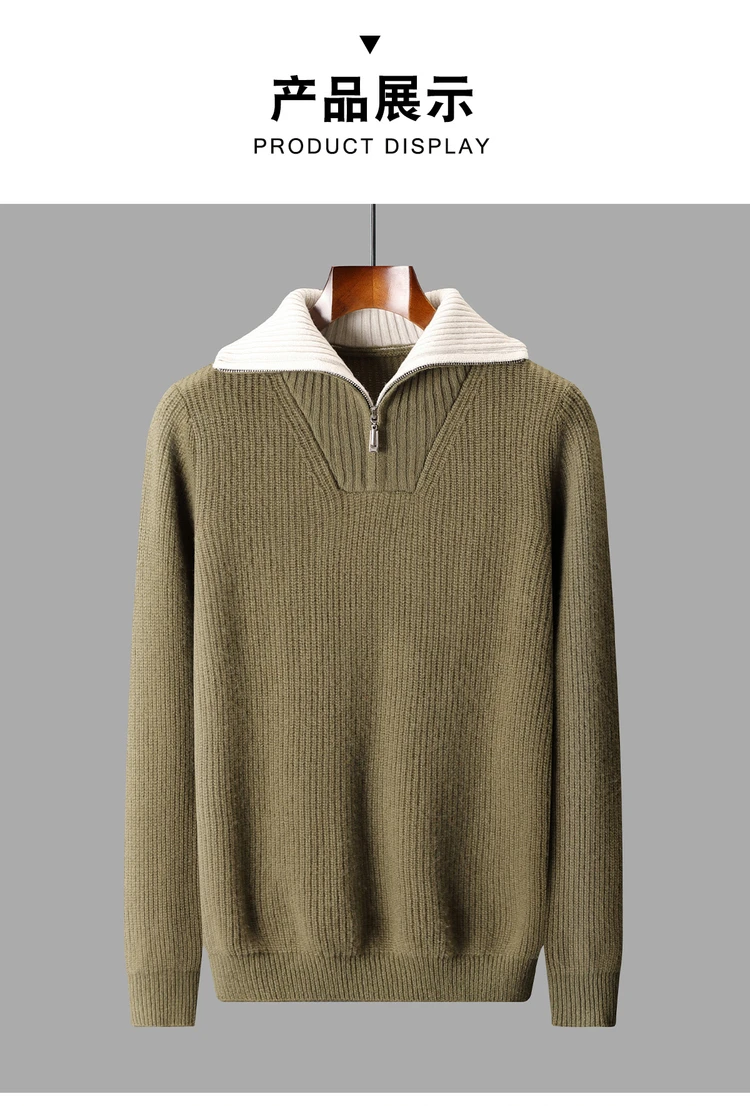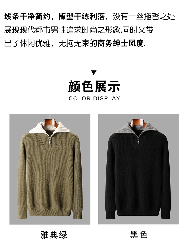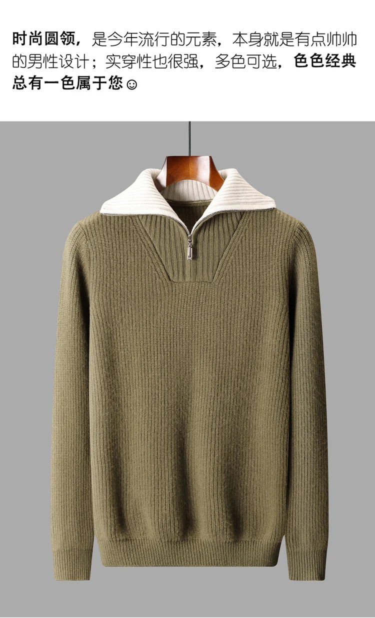 Maglione da uomo in lana 100% di alta qualità Colletto rovesciato Cerniere Pullover 2025 Autunno / Inverno Spessore morbido caldo Maglieria in cashmere Top 1Maglione da uomo in lana 100% di alta qualità Colletto rovesciato Cerniere Pullover 2025 Autunno / Inverno Spessore morbido caldo Maglieria in cashmere Top