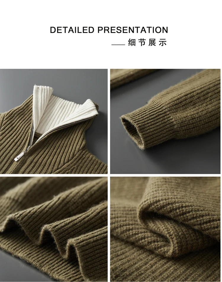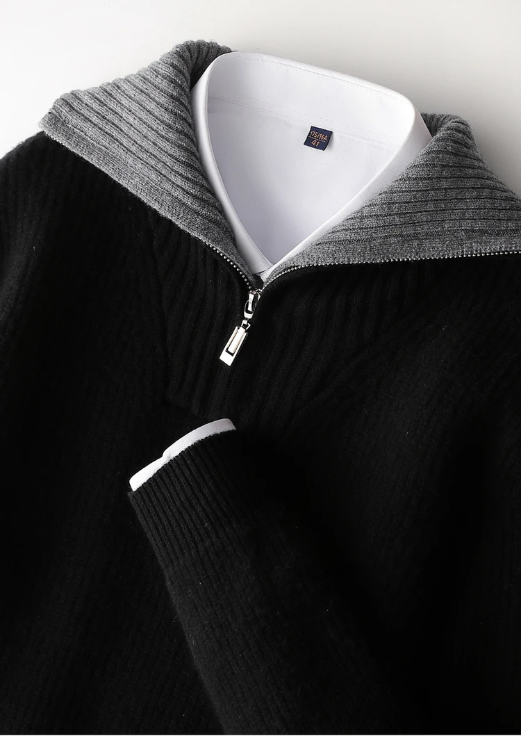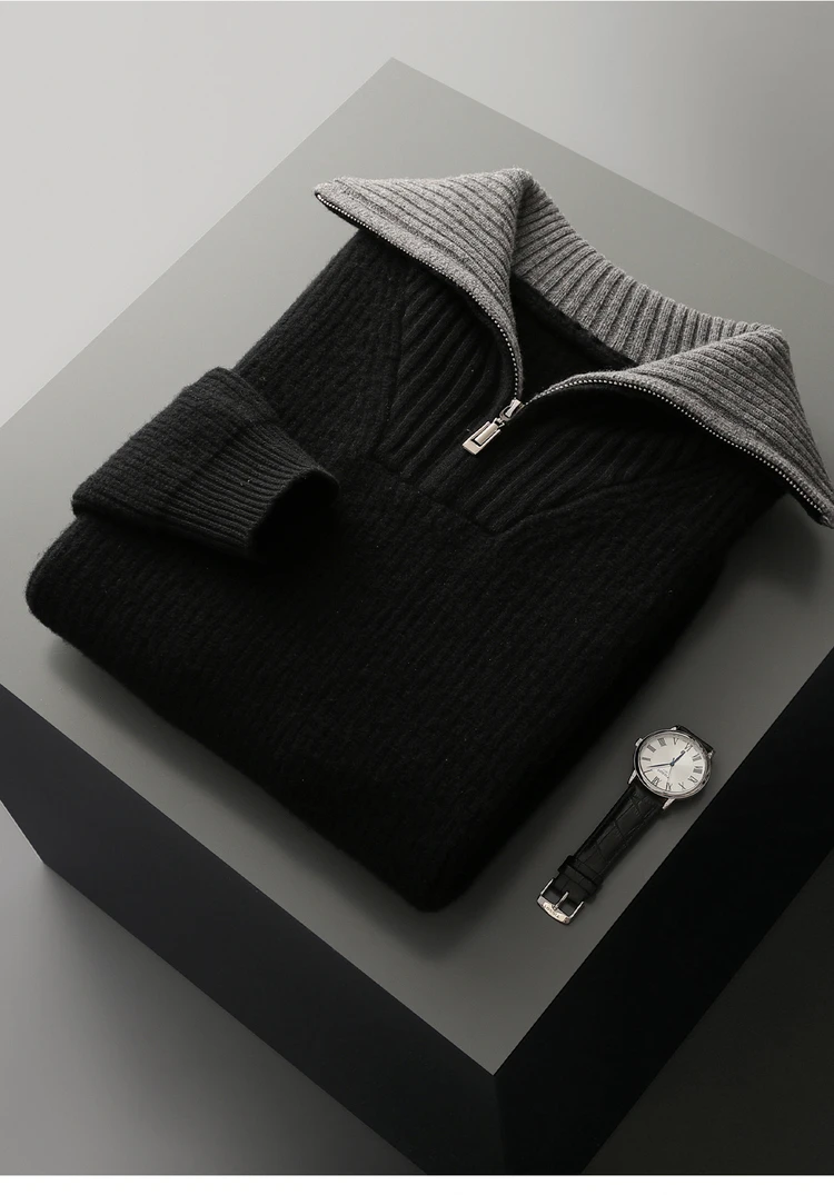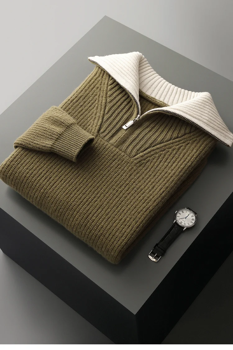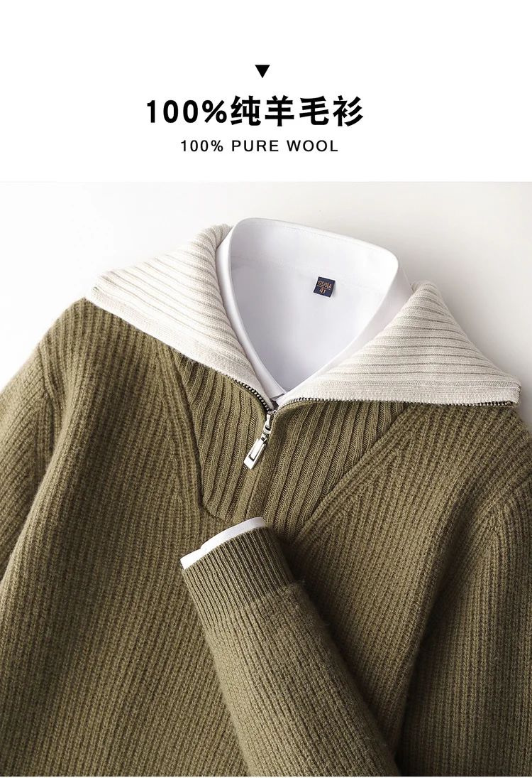 Maglione da uomo in lana 100% di alta qualità Colletto rovesciato Cerniere Pullover 2025 Autunno / Inverno Spessore morbido caldo Maglieria in cashmere Top 1Maglione da uomo in lana 100% di alta qualità Colletto rovesciato Cerniere Pullover 2025 Autunno / Inverno Spessore morbido caldo Maglieria in cashmere Top