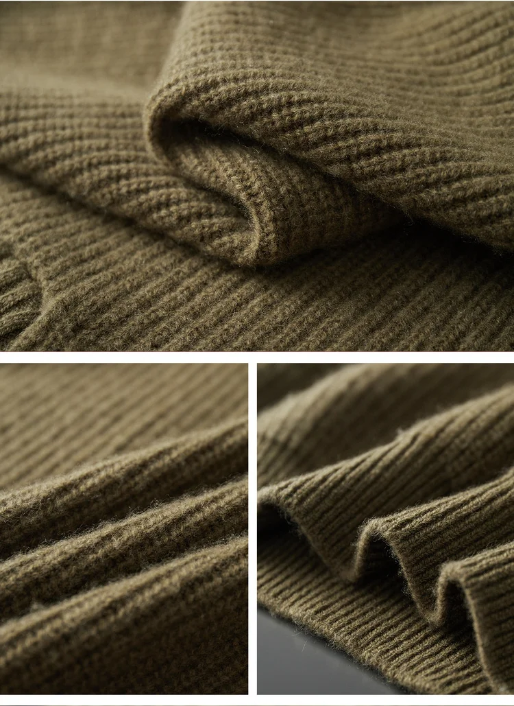 Maglione da uomo in lana 100% di alta qualità Colletto rovesciato Cerniere Pullover 2025 Autunno / Inverno Spessore morbido caldo Maglieria in cashmere Top