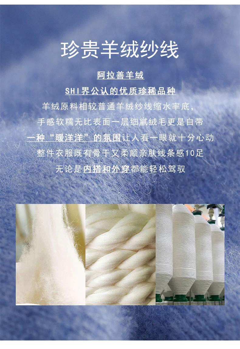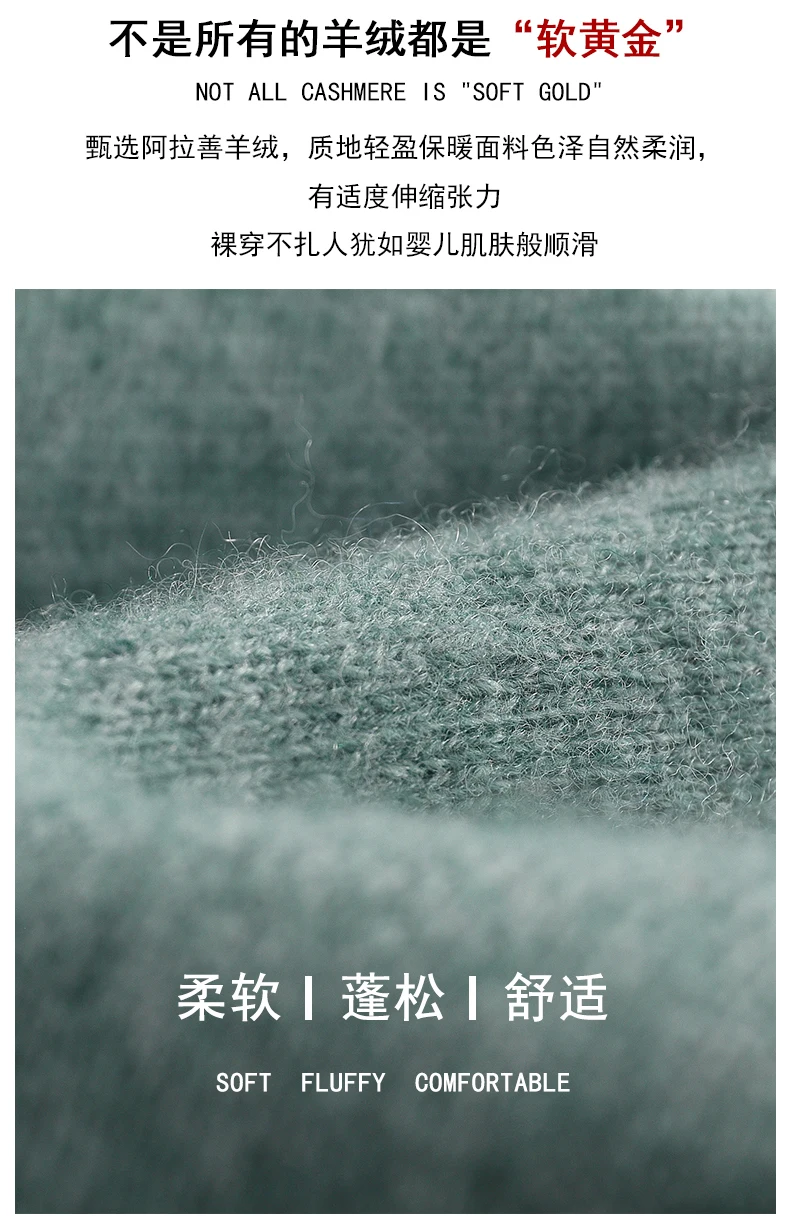 *Questo maglione di cashmere al 100% è realizzato in filato di puro cashmere 38 Nm/2, con una finezza di cashmere di 14,9 micron e una consistenza morbida e soffice.È realizzato in filato a maglia densa a doppio strato realizzato con le migliori fibre di Long Staple, che offre le migliori prestazioni anti-pilling.