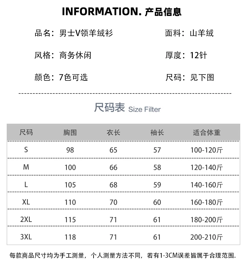 *Occasione: che tu sia abbigliamento quotidiano, a casa, al lavoro, in discoteca, a una festa, agli appuntamenti, alle vacanze e alle vacanze di Natale, ecc., questo maglione in cashmere al 100% sarà il tuo compagno perfetto. *Tutti i prodotti della nostra azienda sono di taglia standard asiatica, scegli la taglia adatta in base alla seguente tabella delle taglie.