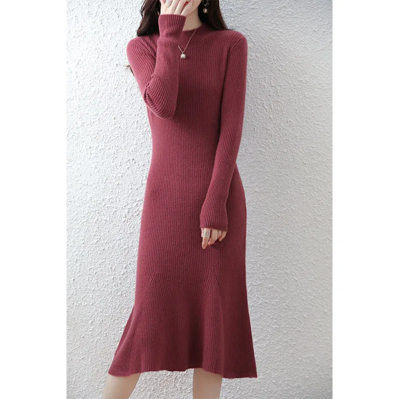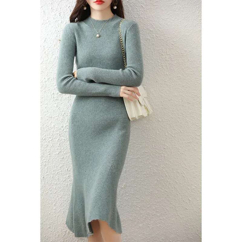 Maglione di Cashmere abiti lavorati a maglia da donna 100% lana Merino o-collo elegante abito da festa autunno inverno Pullover femminile gonne Casual 1Maglione di Cashmere abiti lavorati a maglia da donna 100% lana Merino o-collo elegante abito da festa autunno inverno Pullover femminile gonne Casual