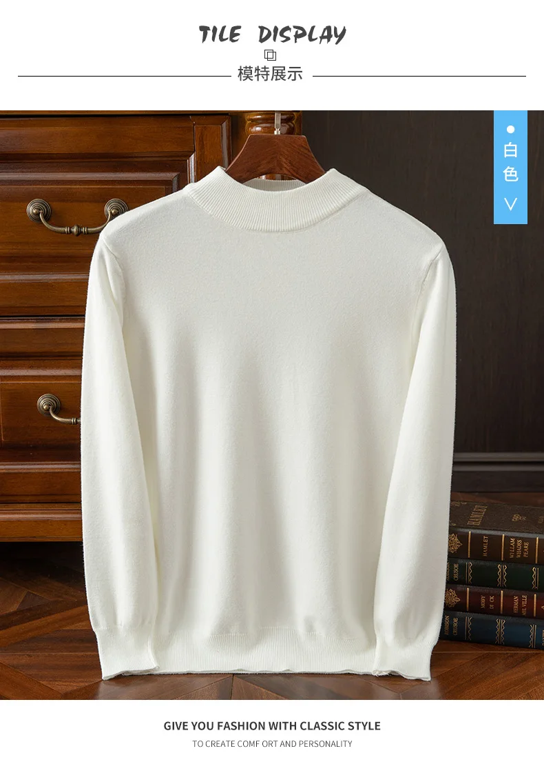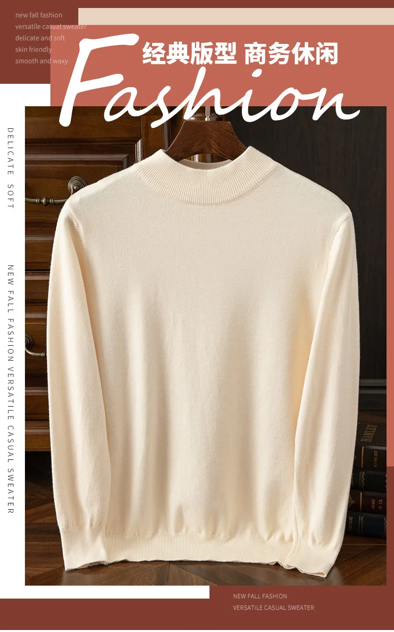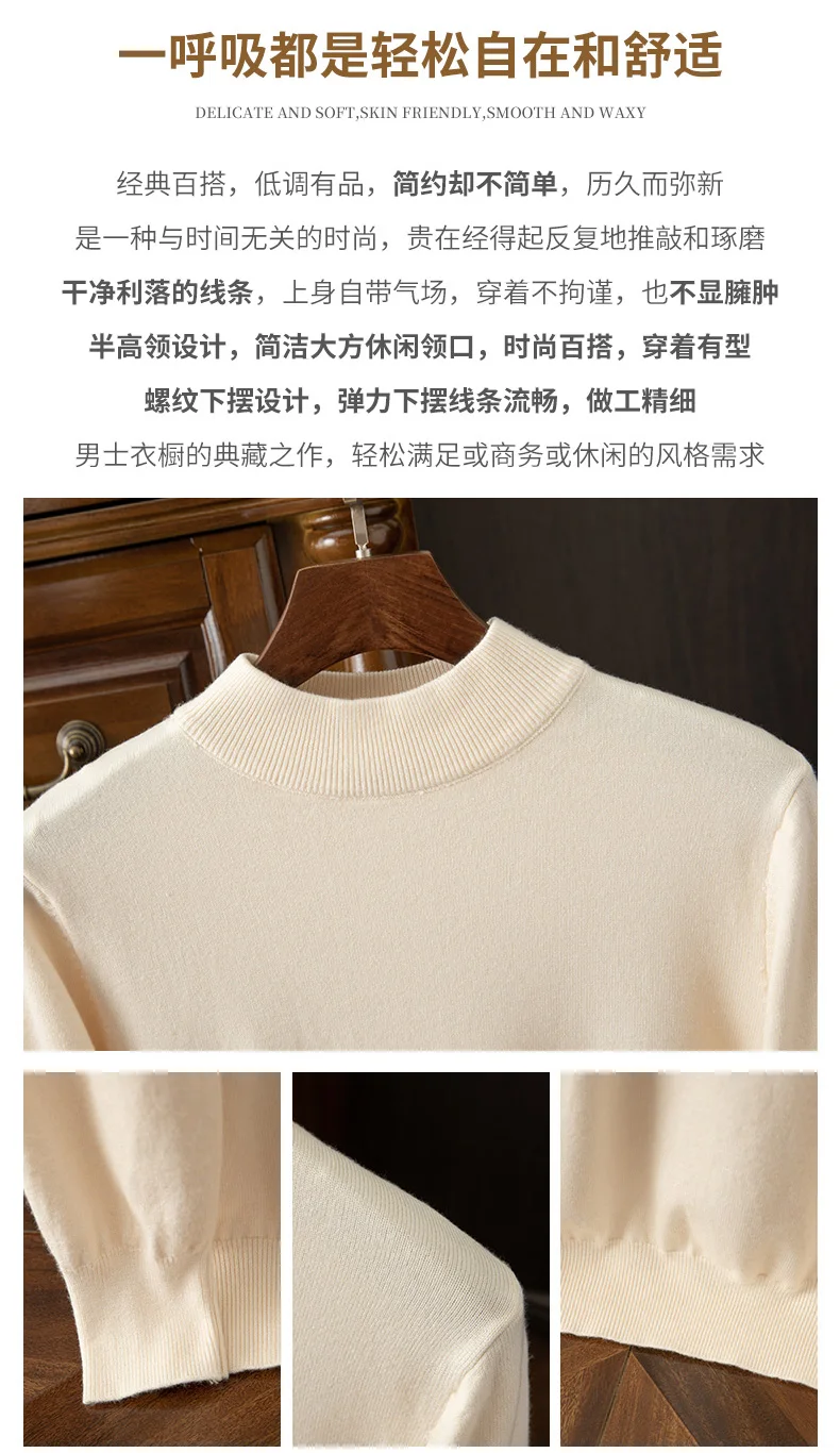 Maglione in cashmere da uomo autunno e inverno casual mezzo dolcevita maglione pullover a maniche lunghe maglieria in cashmere top alla moda 1Maglione in cashmere da uomo autunno e inverno casual mezzo dolcevita maglione pullover a maniche lunghe maglieria in cashmere top alla moda