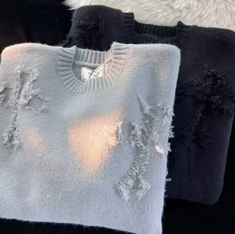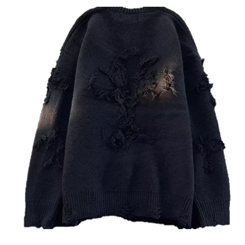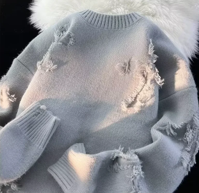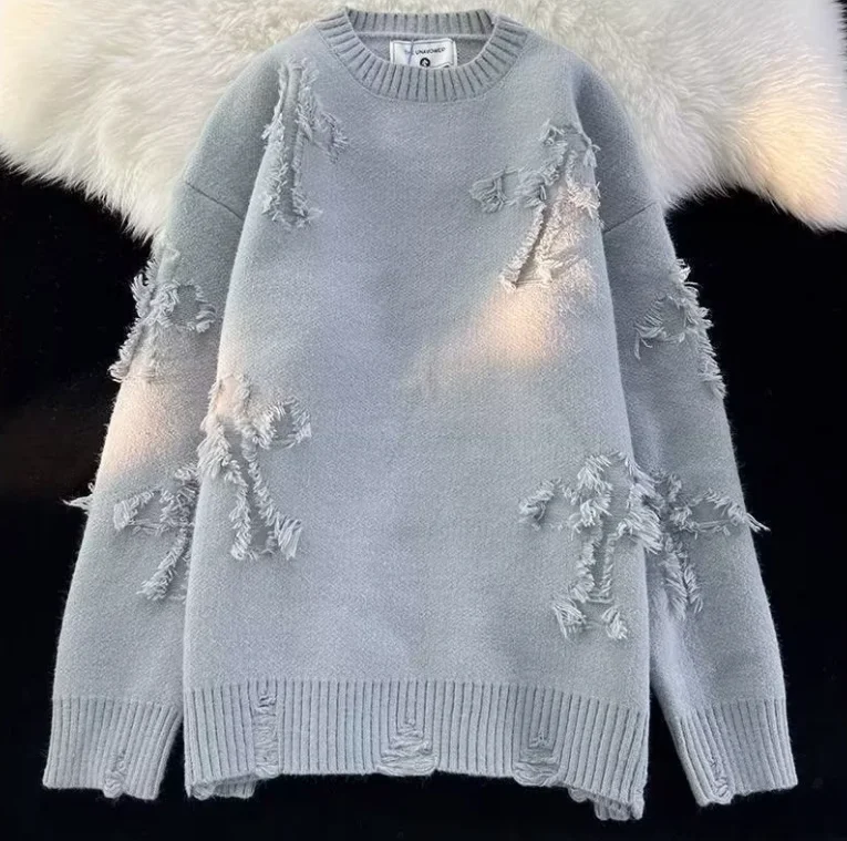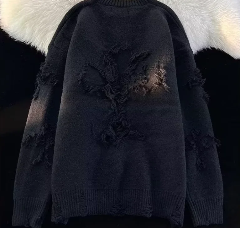 Maglione invernale strappato da uomo girocollo pullover High Street maglione tinta unita stile giapponese retrò americano per adolescenti