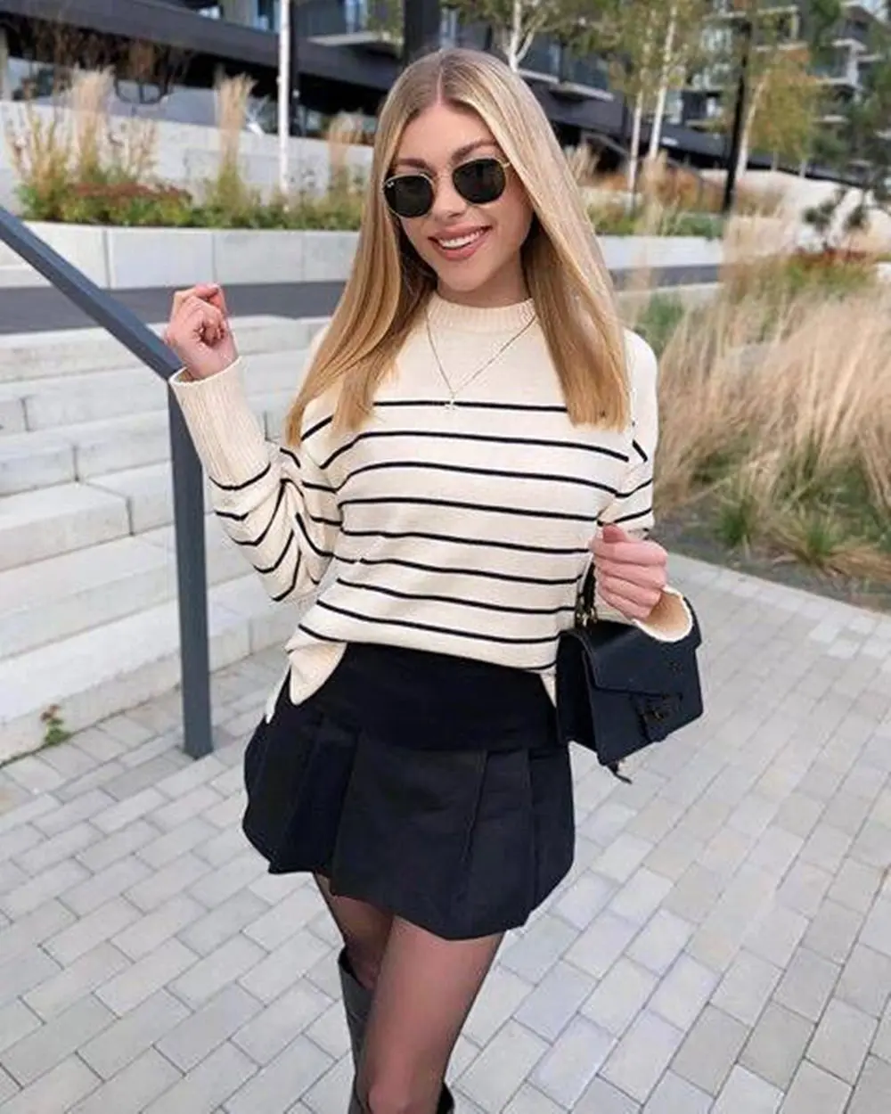 Maglione largo a righe Beige Pullover da donna Streetwear top lavorato a maglia a maniche lunghe maglione femminile autunno inverno maglioni lavorati a maglia larghi