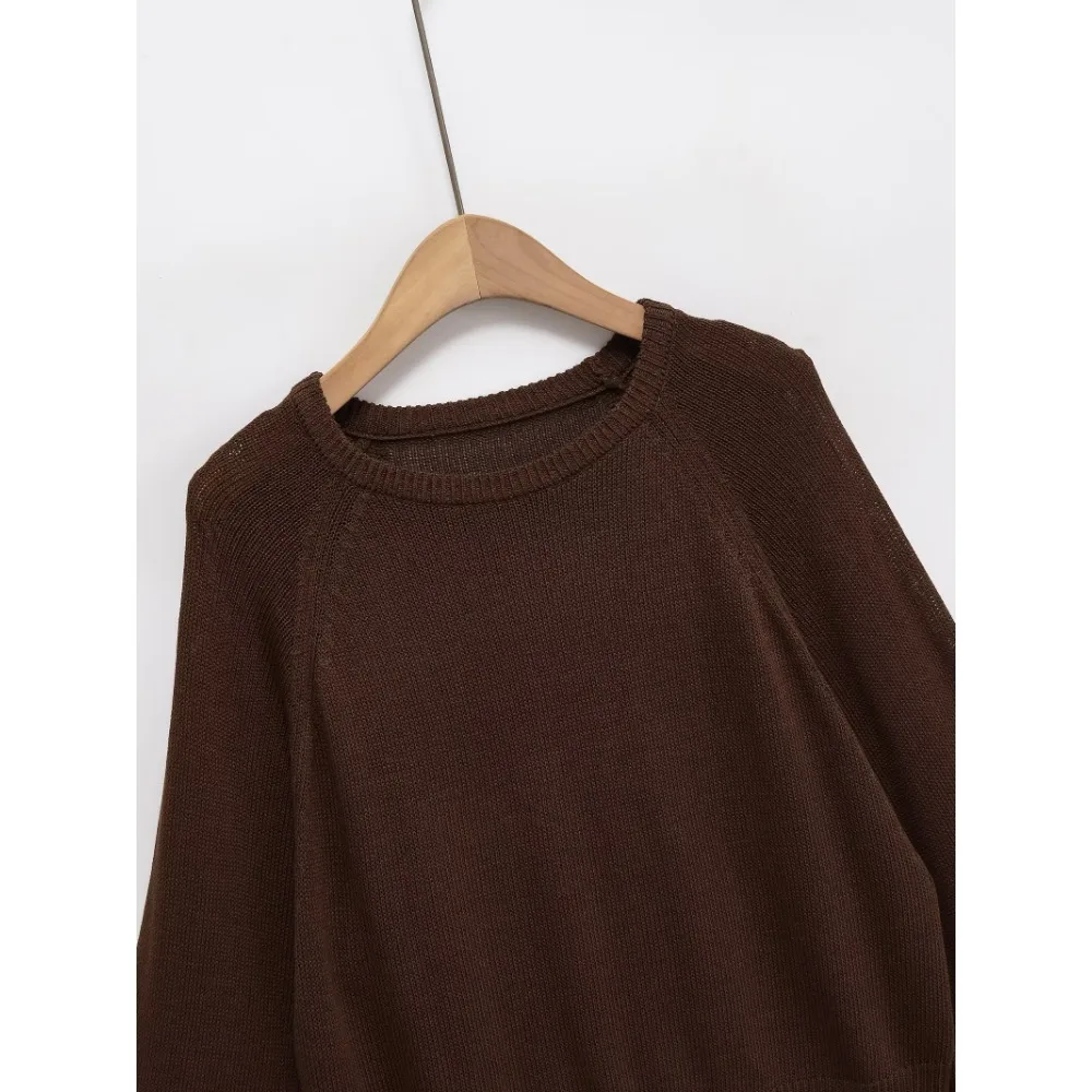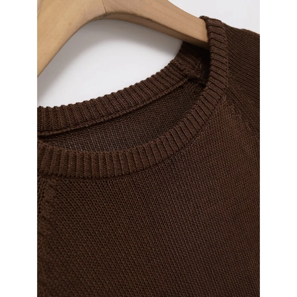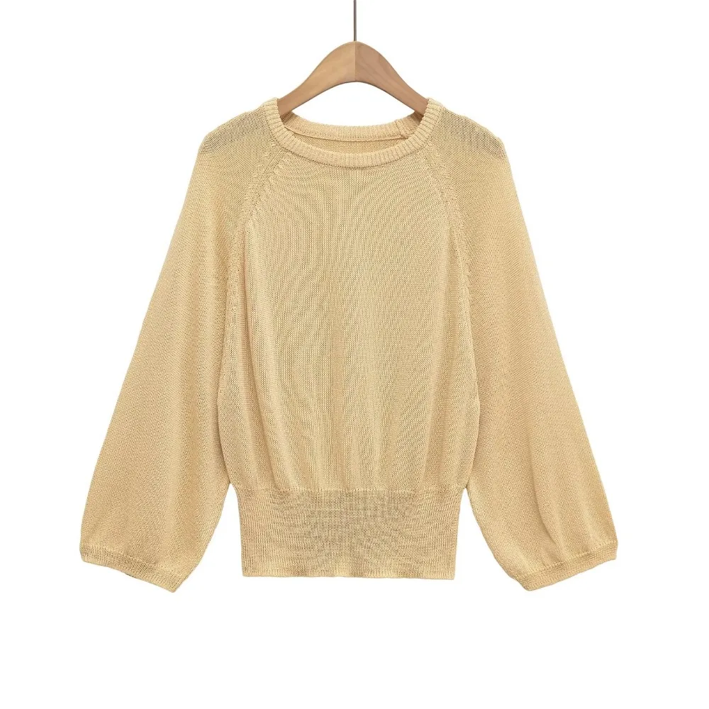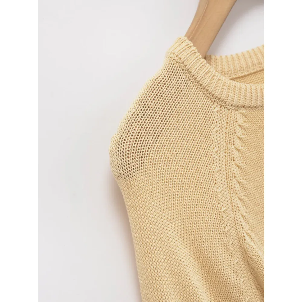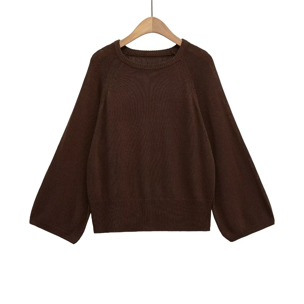 Maglione lavorato a maglia a maniche larghe da donna elegante e rilassante Pullover da strada Maglieria casual con scollo a O con maniche larghe sotto il gomito