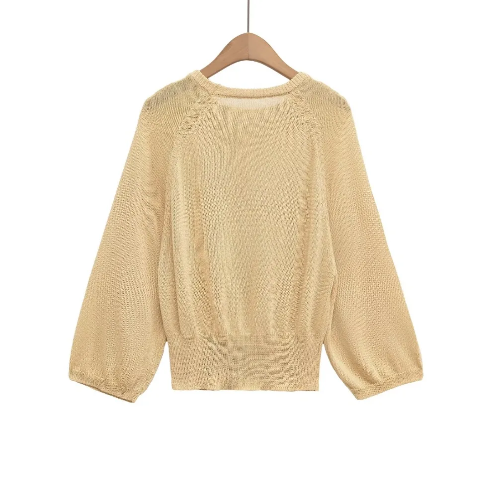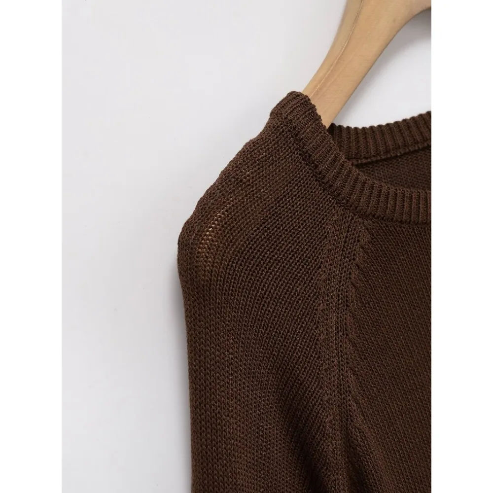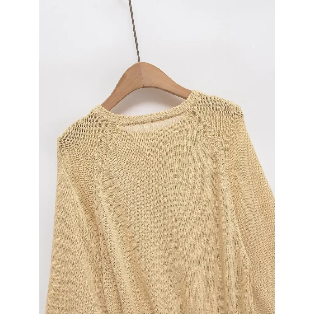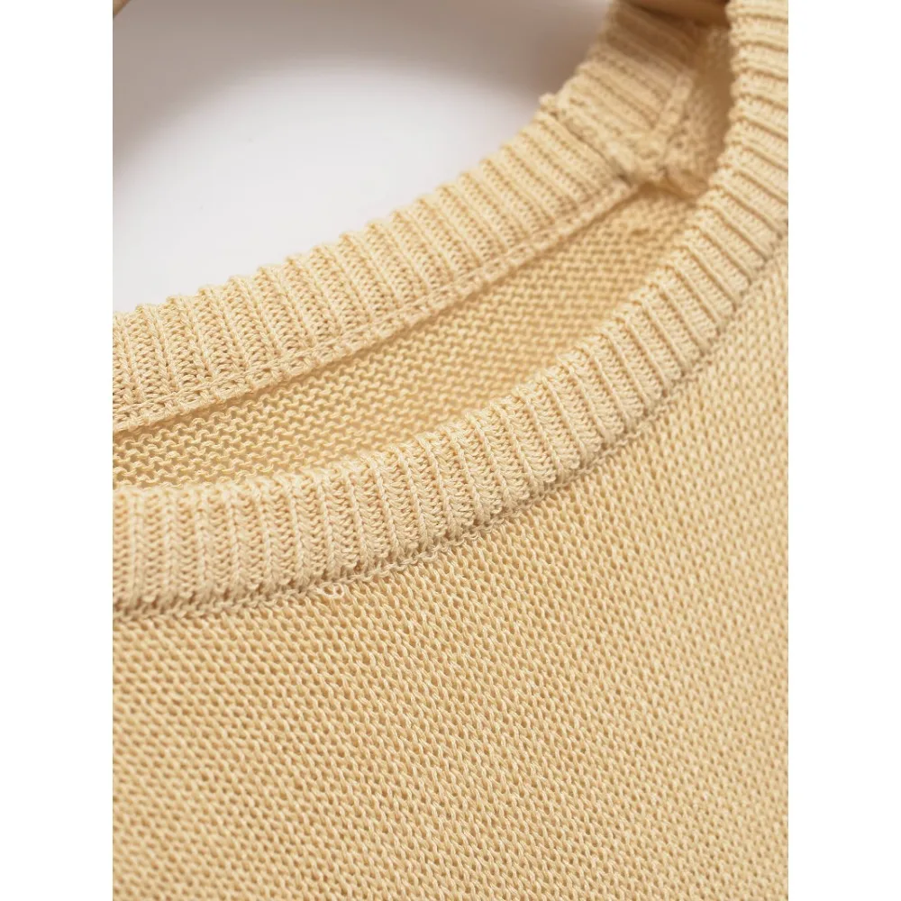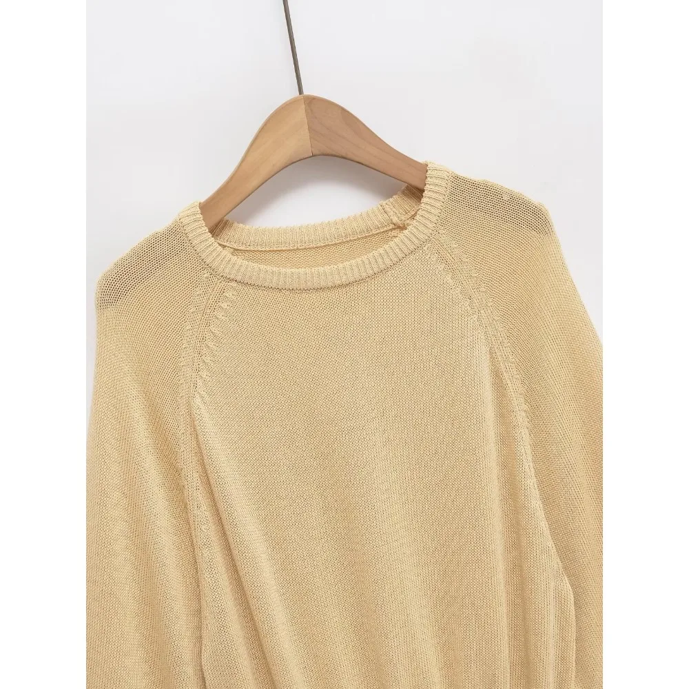 Maglione lavorato a maglia a maniche larghe da donna elegante e rilassante Pullover da strada Maglieria casual con scollo a O con maniche larghe sotto il gomito