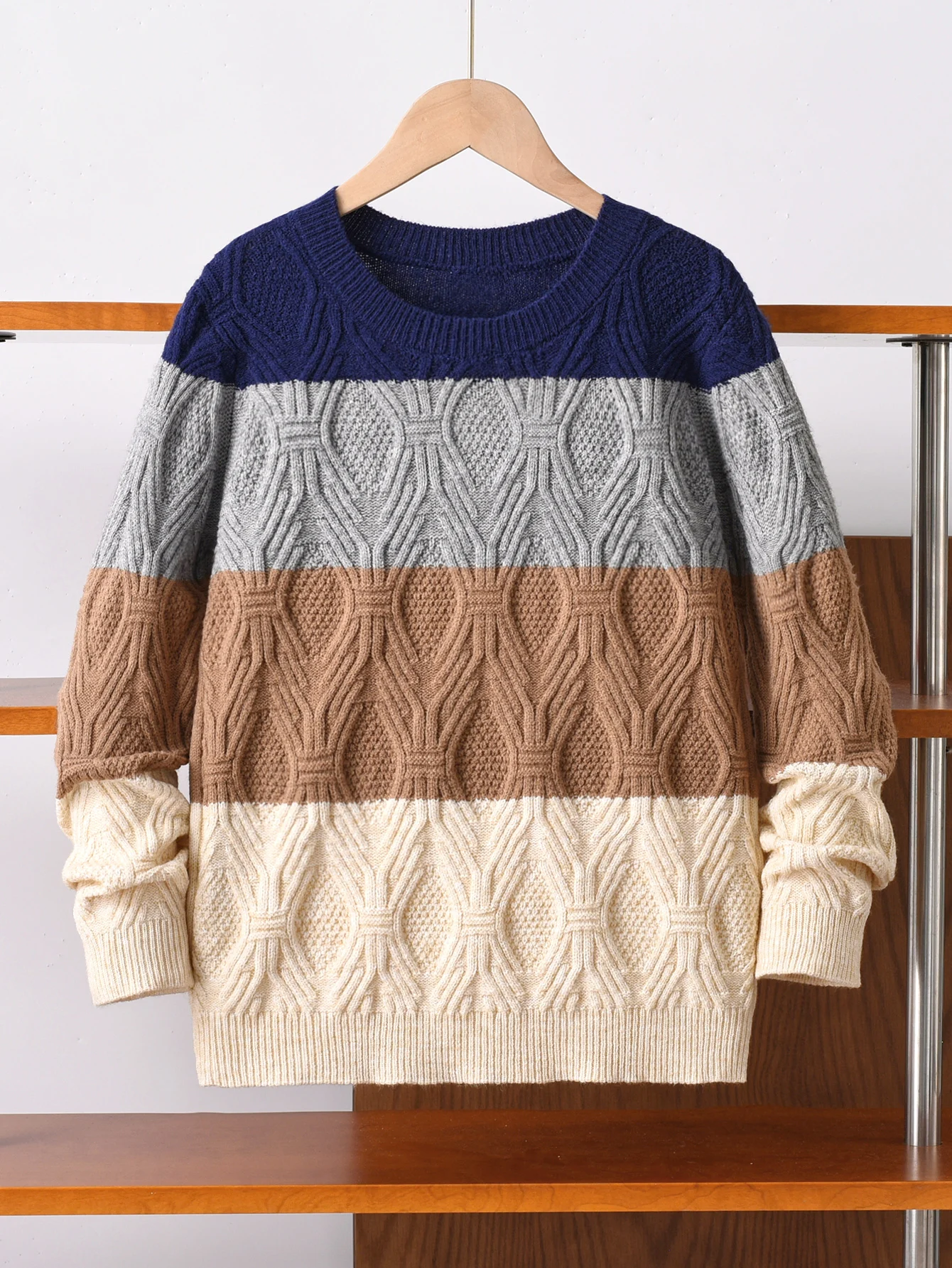 Maglione lavorato a maglia a righe color block in stile college da ragazzo adatto per il tempo libero scolastico in primavera, autunno e inverno