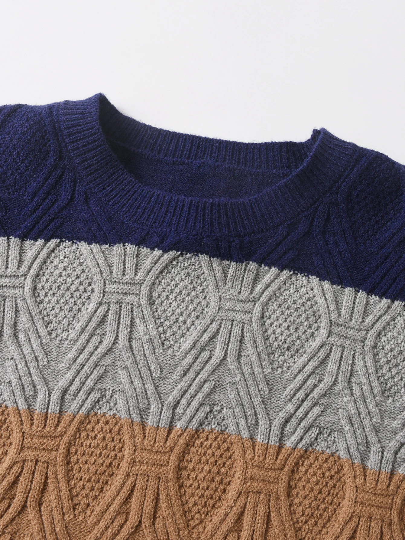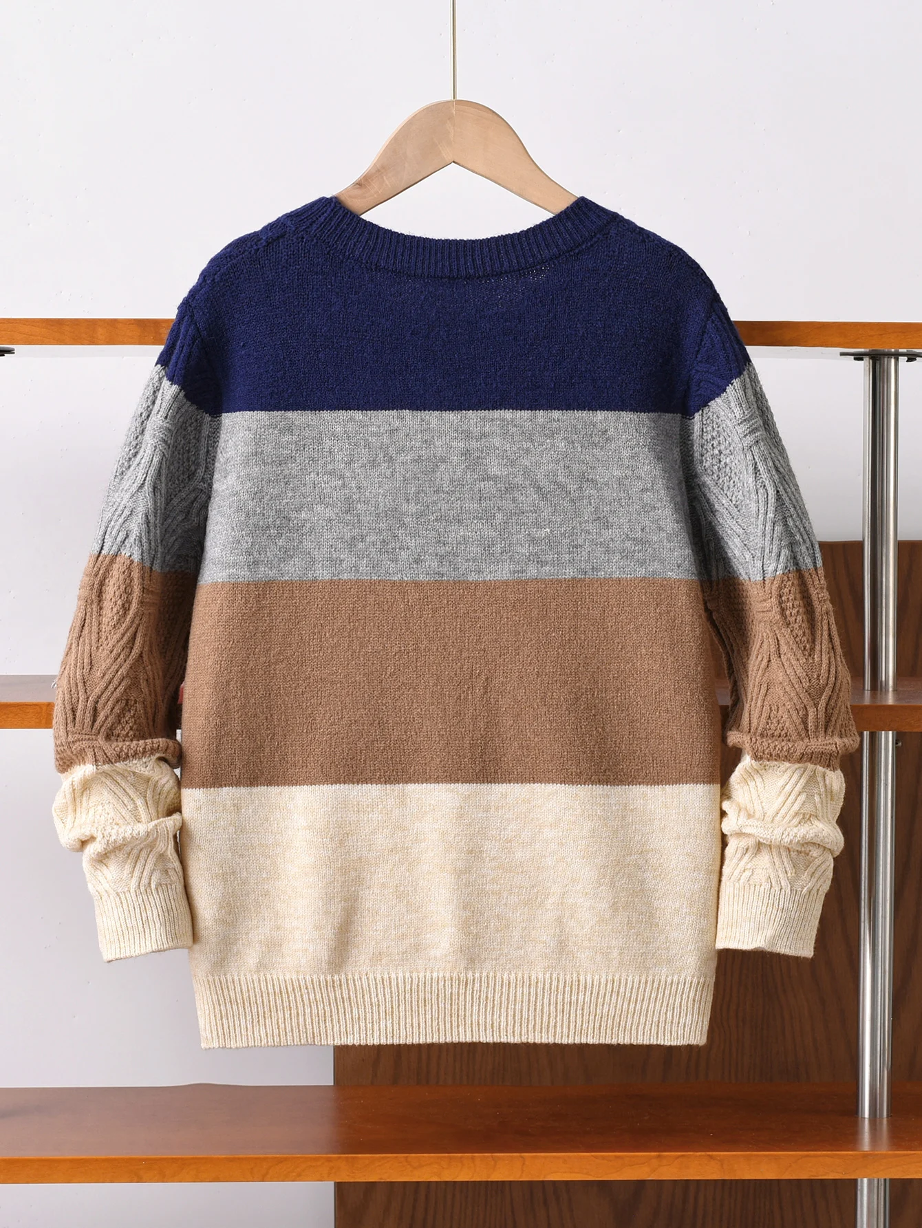 Maglione lavorato a maglia a righe color block in stile college da ragazzo adatto per il tempo libero scolastico in primavera, autunno e inverno