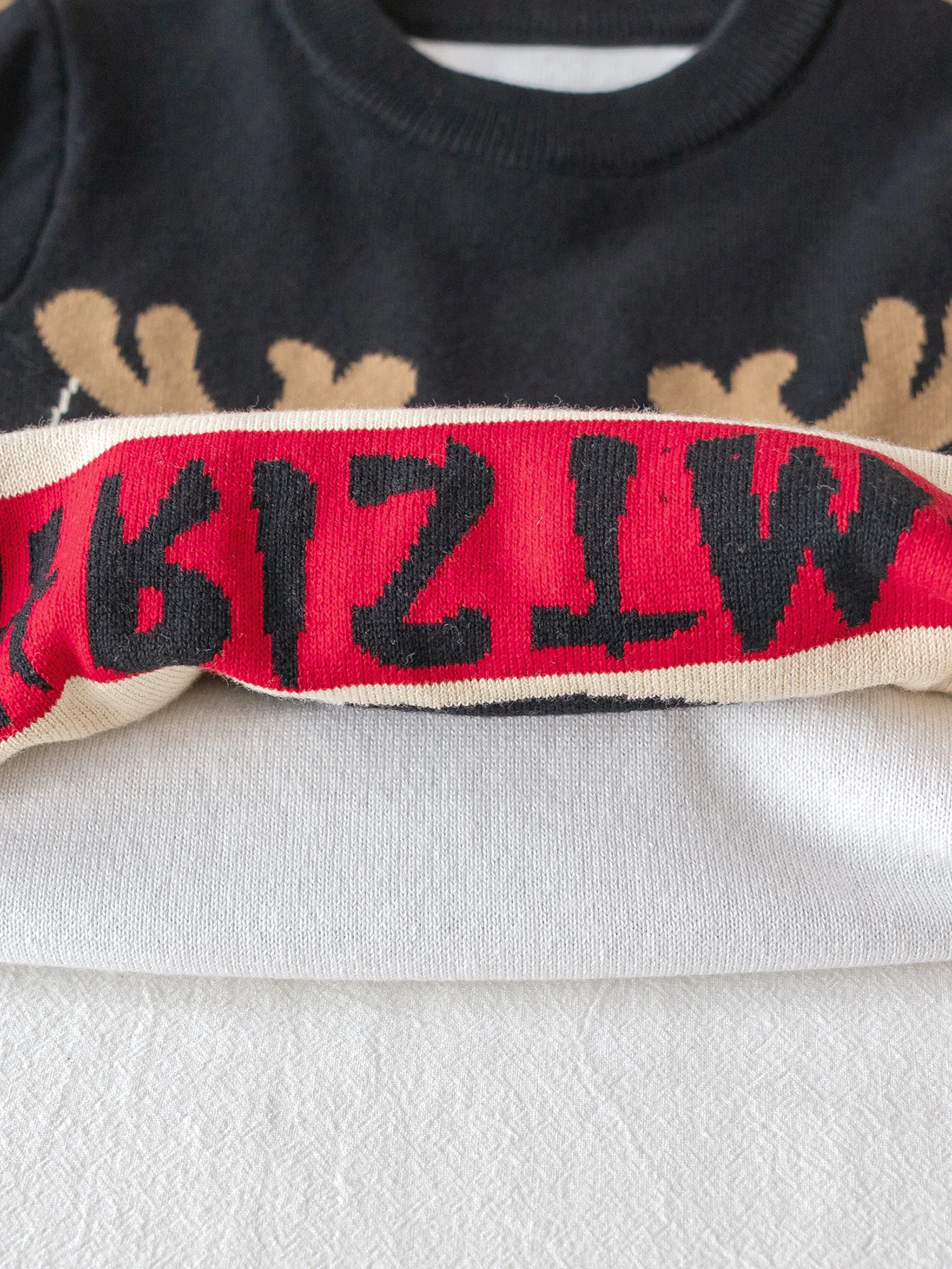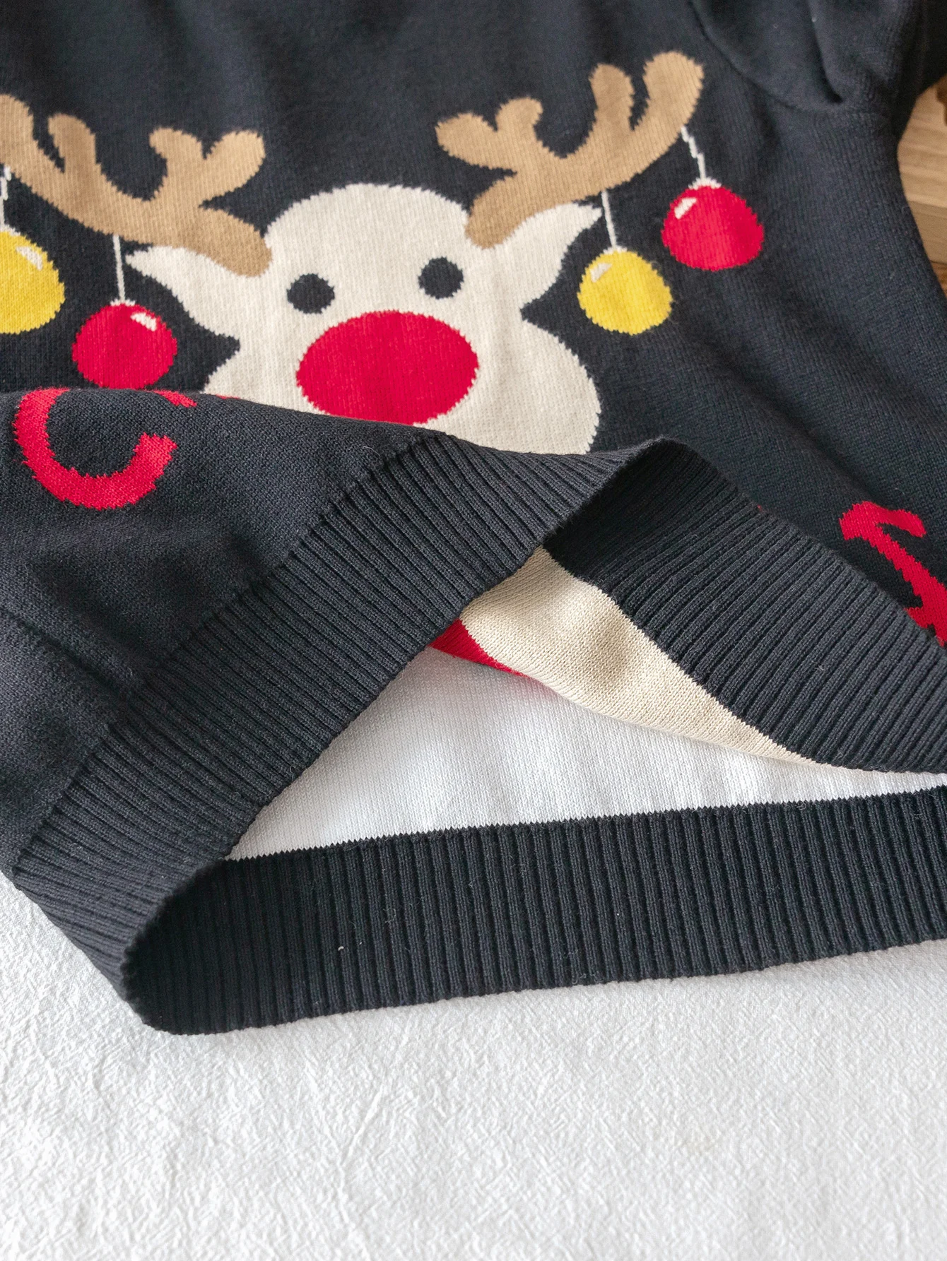 Maglione lavorato a maglia con motivo renna natalizia per ragazzi e ragazze adatto per feste di Natale in primavera, autunno e inverno 1Maglione lavorato a maglia con motivo renna natalizia per ragazzi e ragazze adatto per feste di Natale in primavera, autunno e inverno