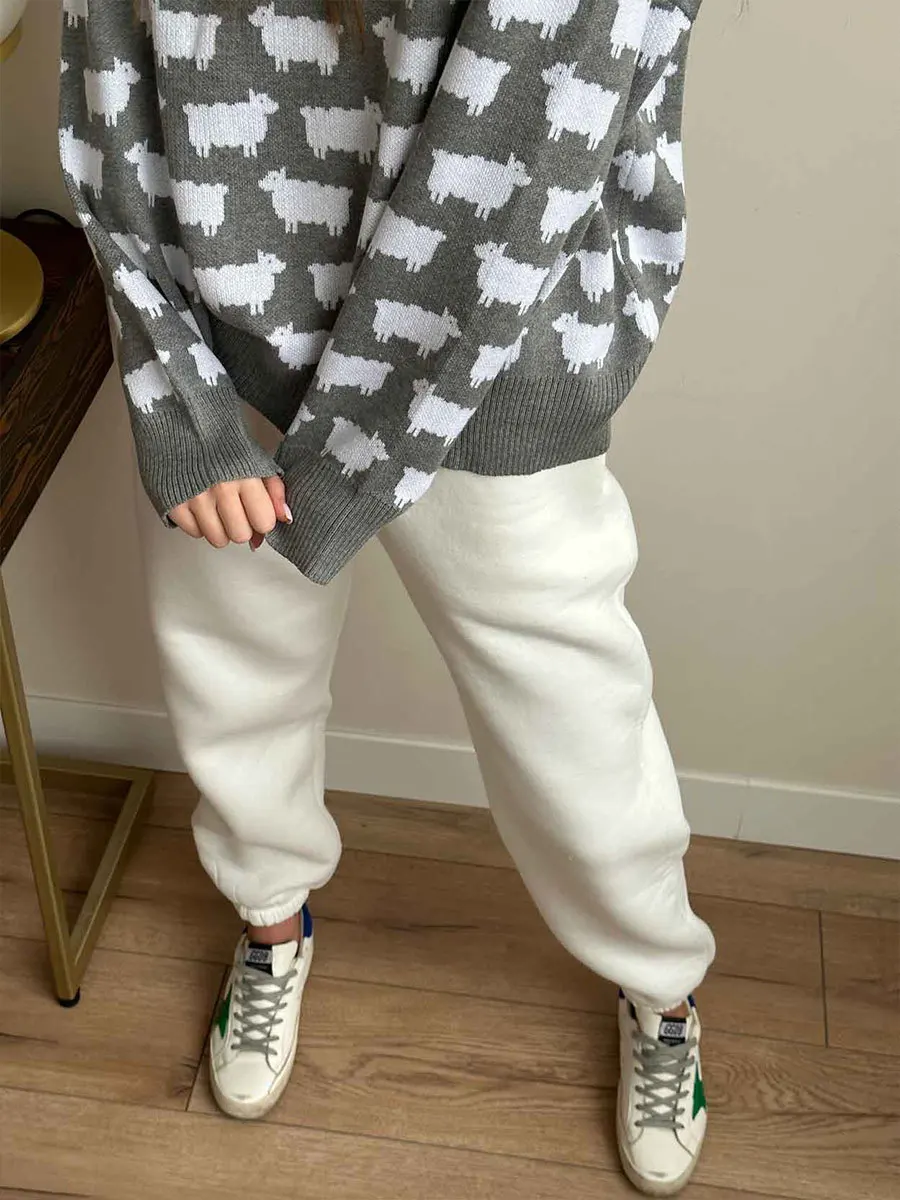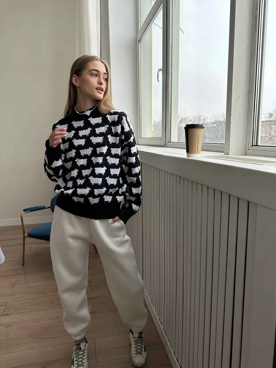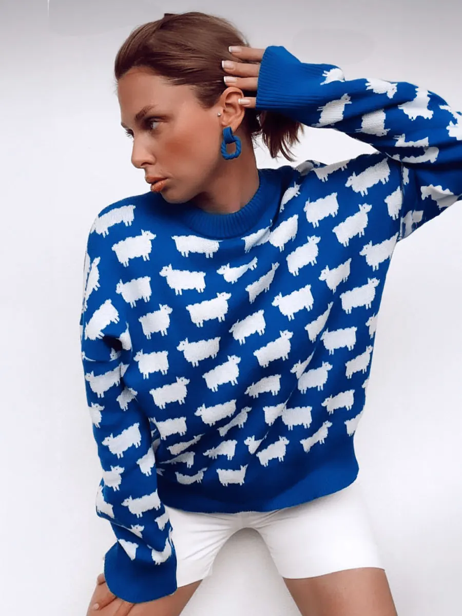 Maglione lavorato a maglia con scollo a O di pecora da donna Maglieria Pullover grigio Maglione lavorato a maglia allentato Blu Rosso Nero Verde Pull Autunno Inverno 2025 Nuovo