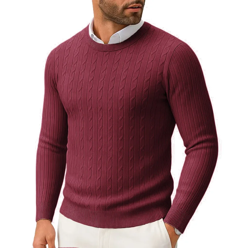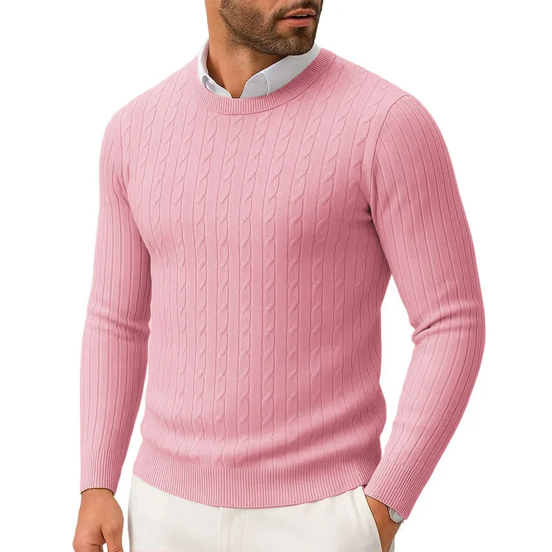 Maglione lavorato a maglia girocollo da uomo nuovo, vestibilità slim, leggero, casual, con motivo intrecciato, pullover lavorato a maglia, maglioni a maniche lunghe 1Maglione lavorato a maglia girocollo da uomo nuovo, vestibilità slim, leggero, casual, con motivo intrecciato, pullover lavorato a maglia, maglioni a maniche lunghe