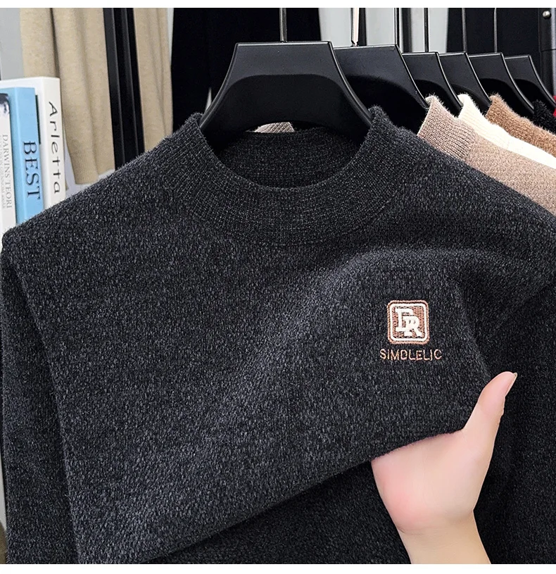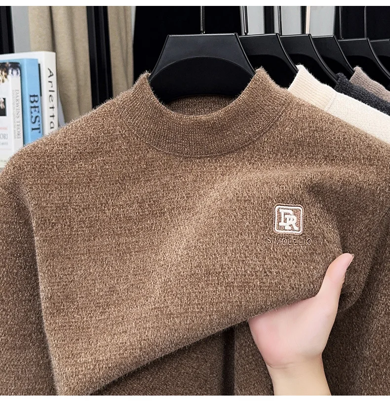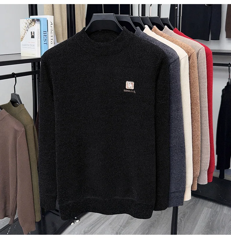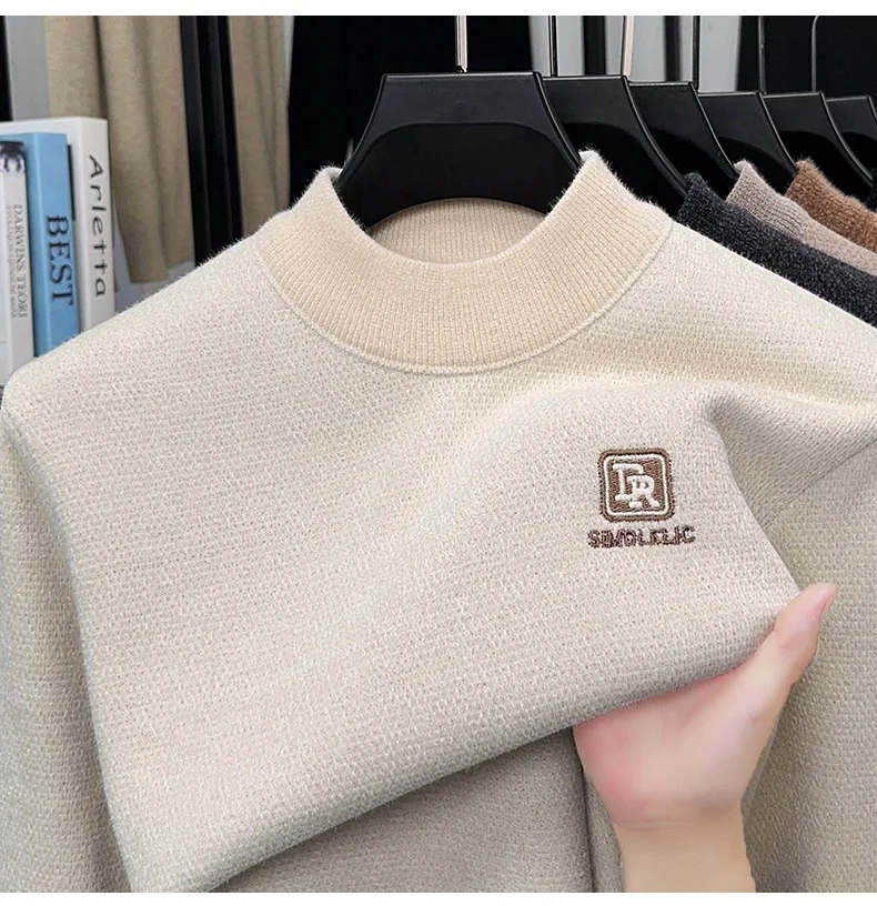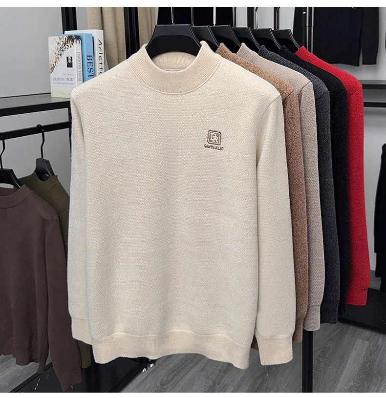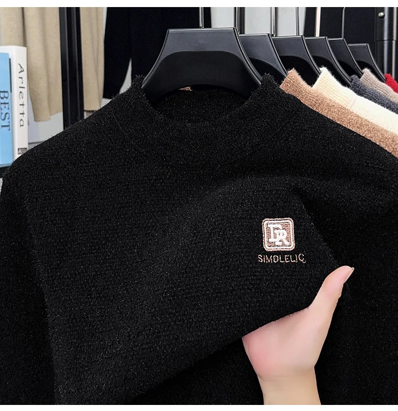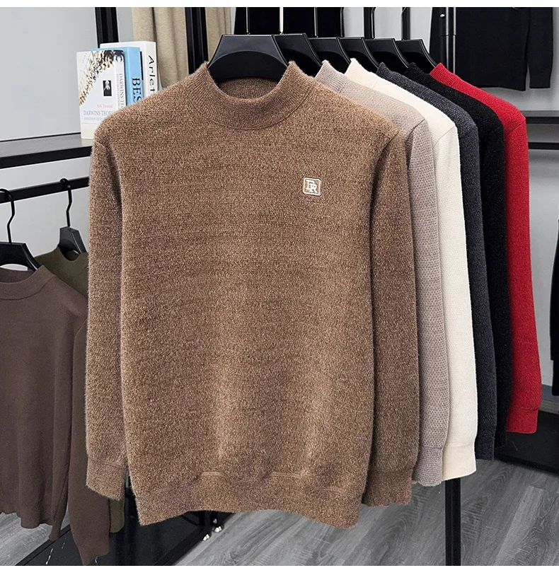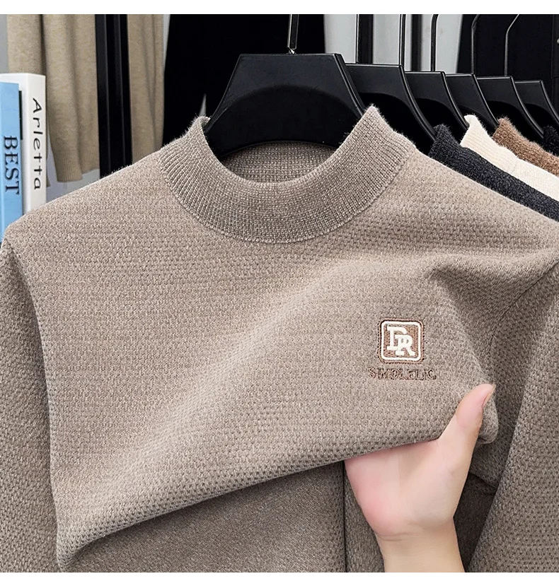 Maglione lavorato a maglia in velluto spesso a collo semi alto da uomo autunno e inverno con maglione base calda con ricamo in velluto integrato 1Maglione lavorato a maglia in velluto spesso a collo semi alto da uomo autunno e inverno con maglione base calda con ricamo in velluto integrato